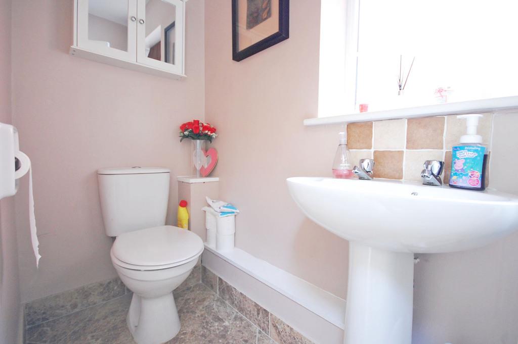 Double glazed window to front aspect, low level WC, pedestal wash hand basin, radiator, tiled flooring, smooth ceiling.