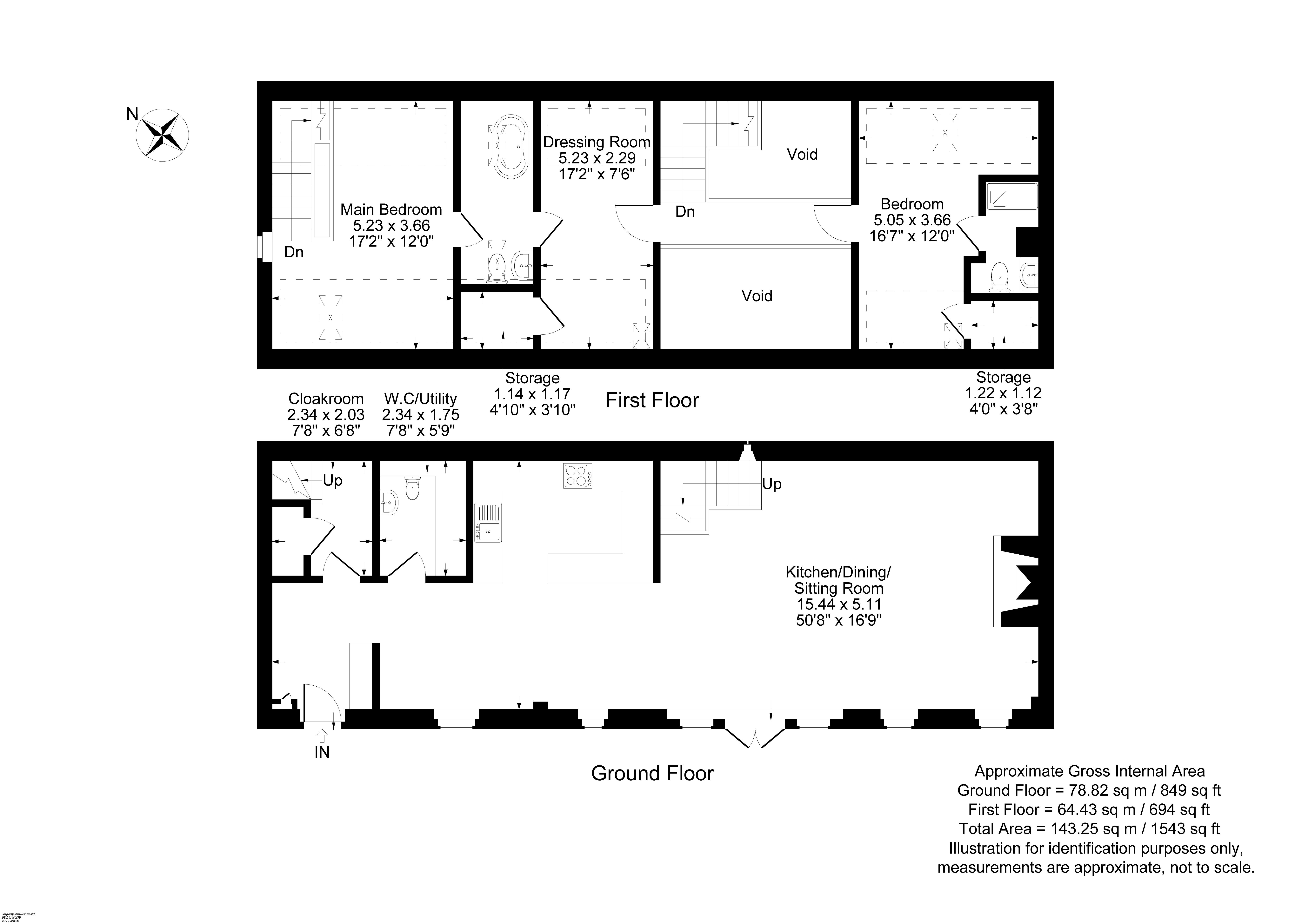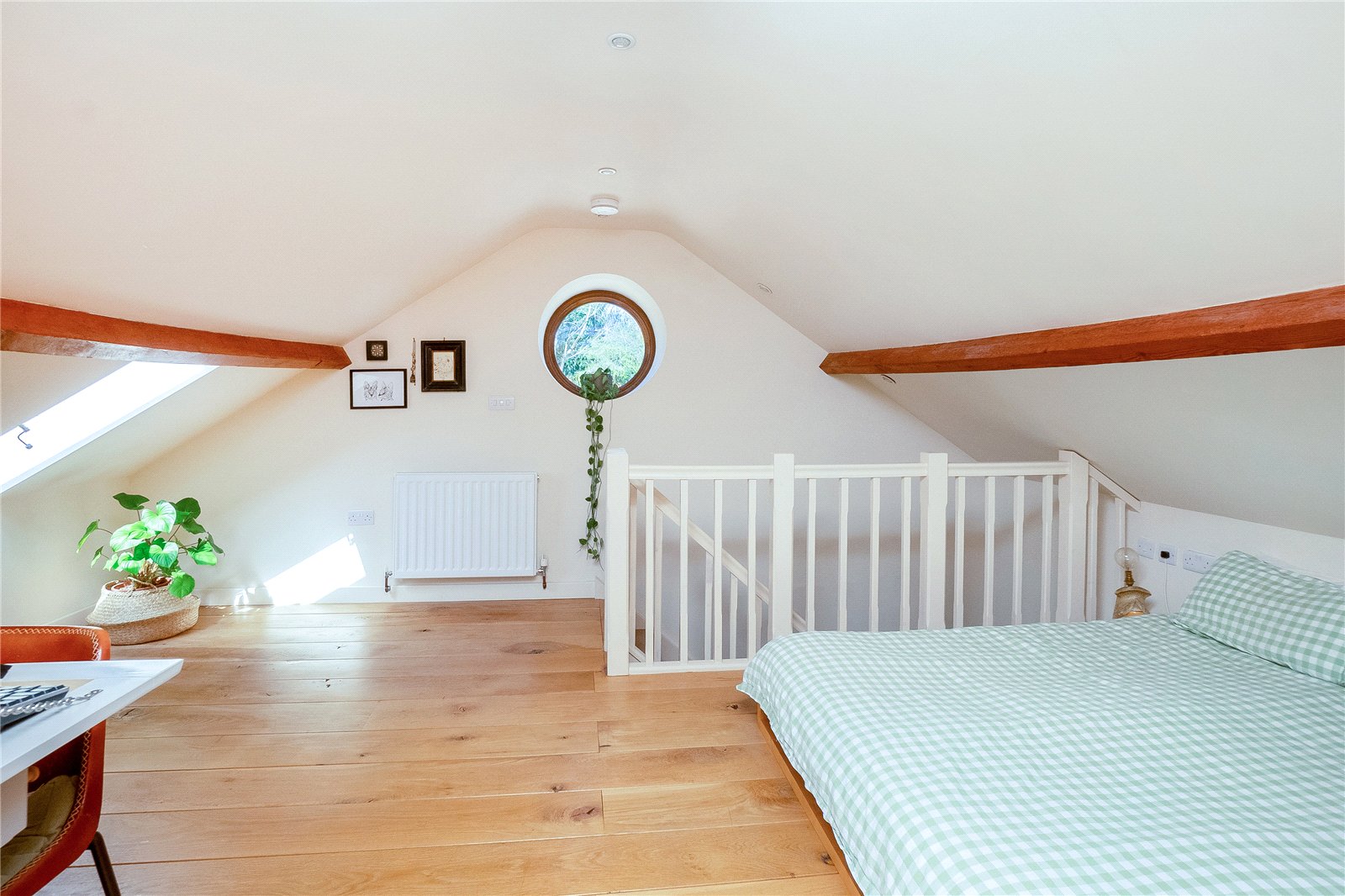 Dressing Room/Bedroom: Oak floorboards, cloak hanging space, glass and oak galleried landing looking down onto the sitting room. Door to