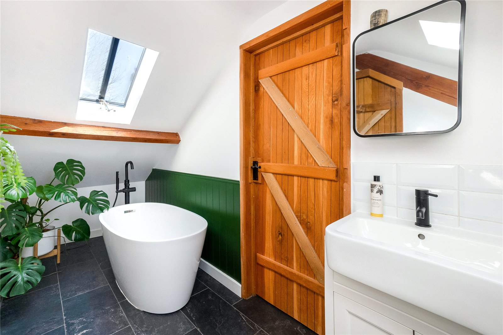 En-suite Bathroom: Velux windows, low level WC, hand wash basin, free standing bath, door to