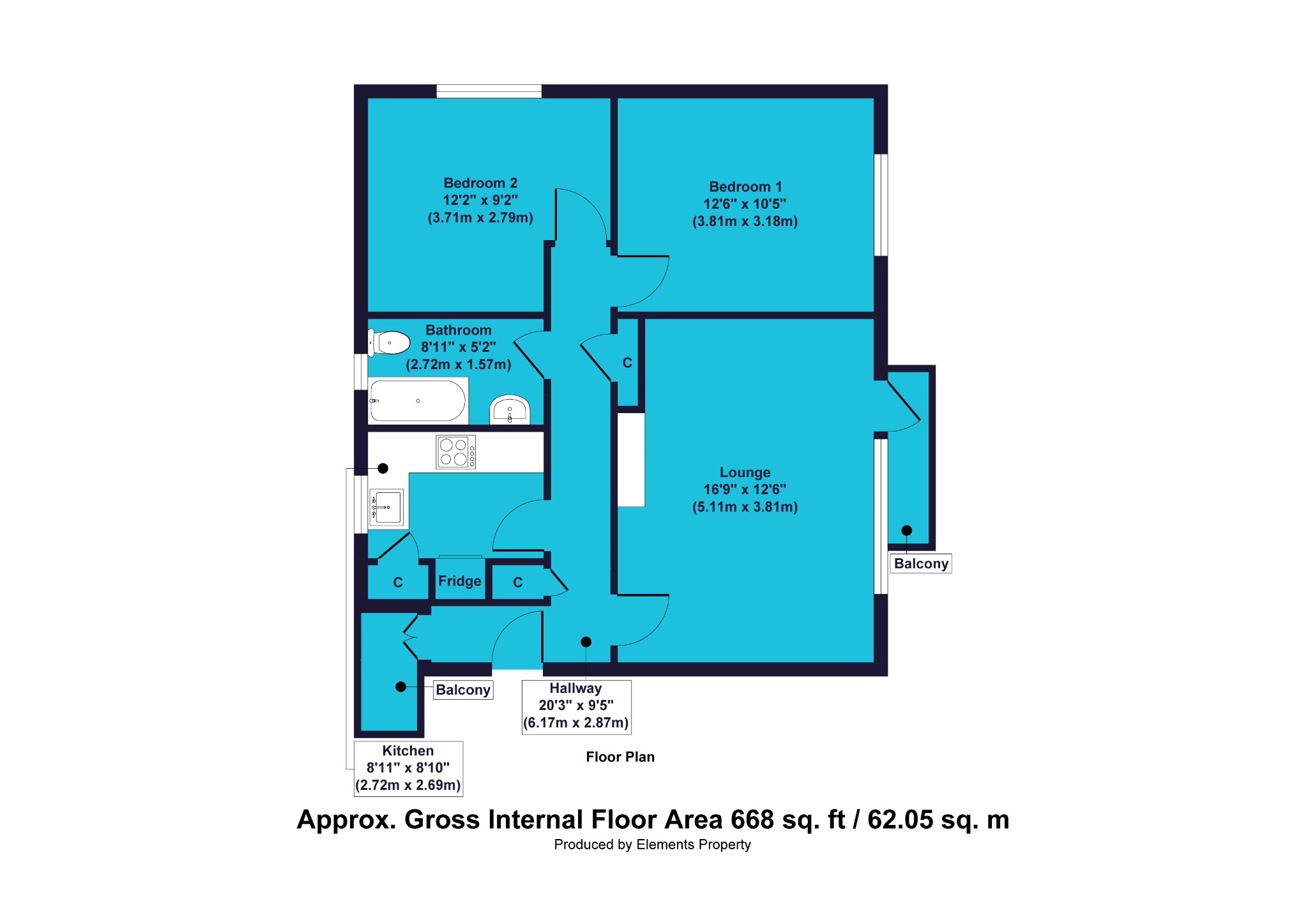 - Two balconies