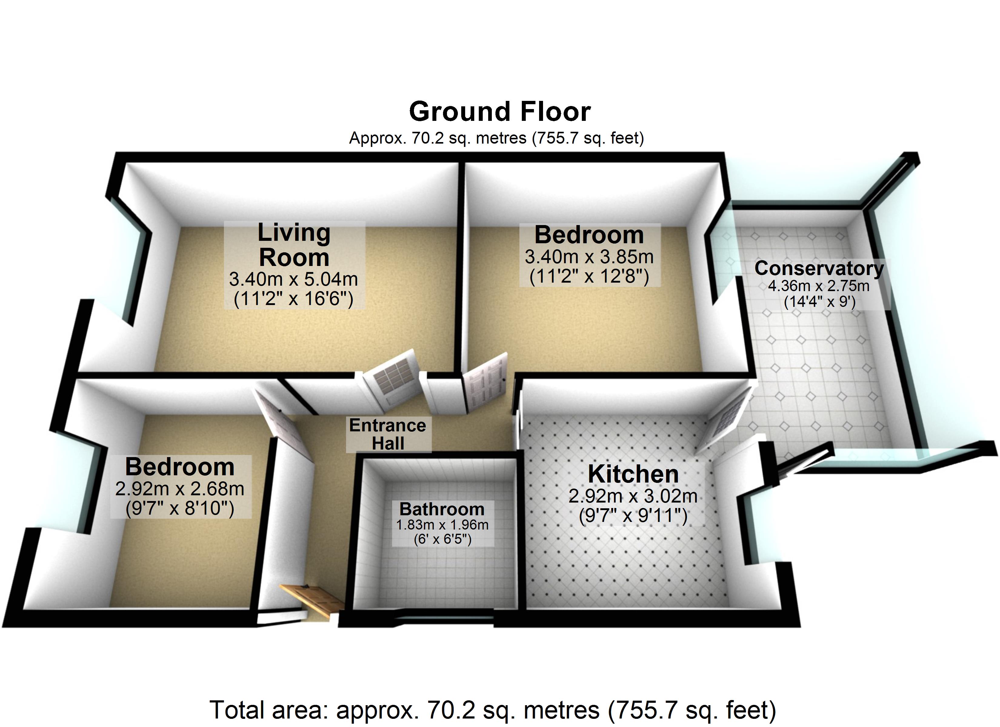 Internally the accommodation comprises of entrance hallway, living room, kitchen, TWO BEDROOMS, shower room and conservatory.
