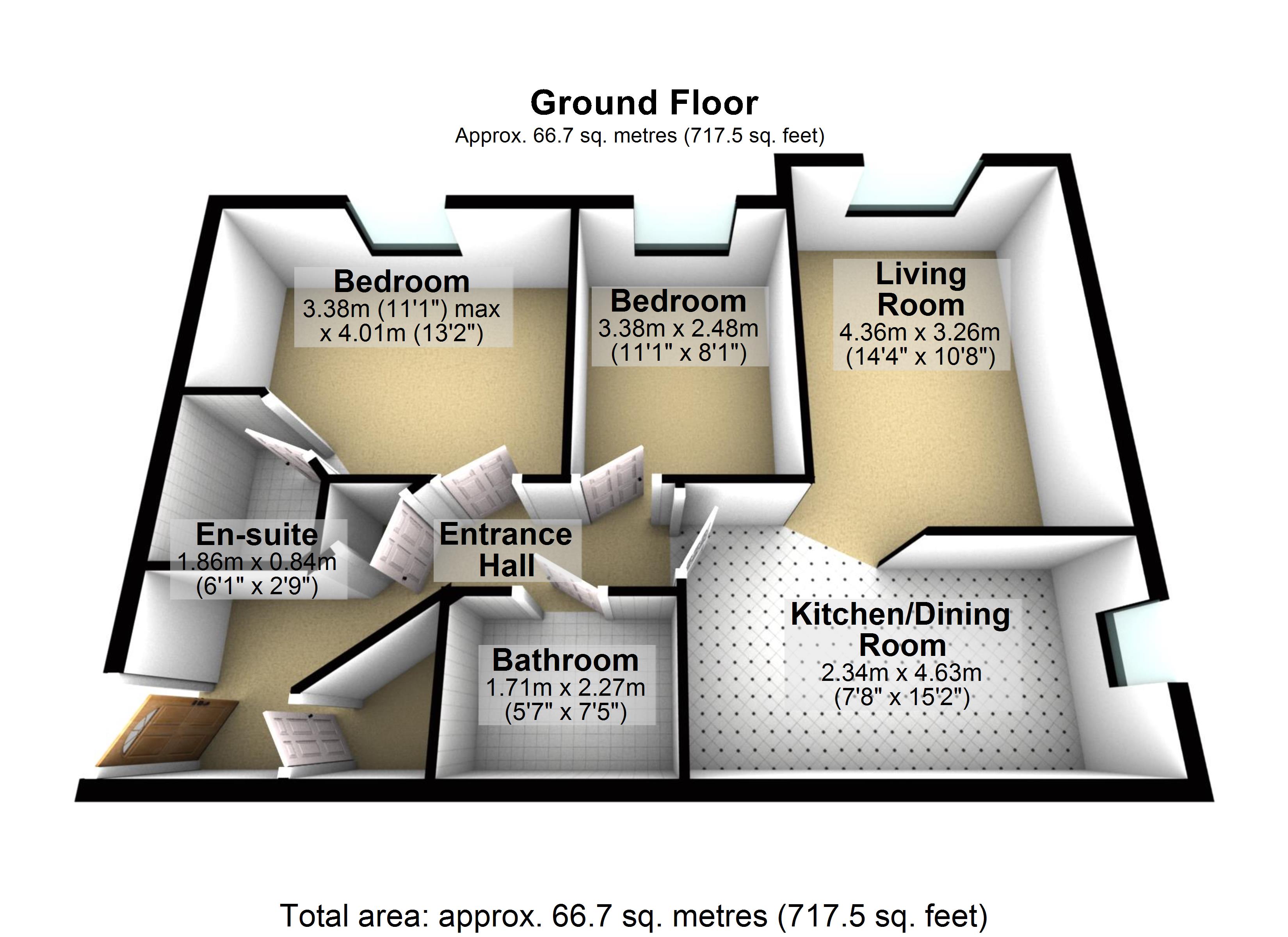 Internally the accommodation covers approximately just over 715sqft of living space, comprising of entrance hallway, living room, modern fitted kitchen, master en suite, second double bedroom and family bathroom suite,