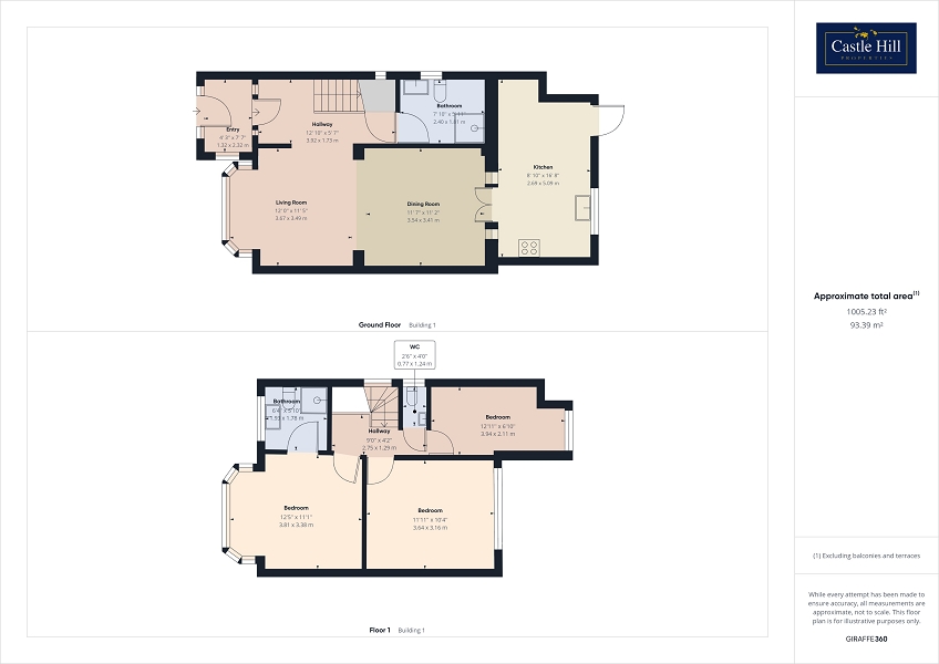 On the first floor are 3 bedrooms, 2 of which have built in wardrobes, shower room and a separate WC.