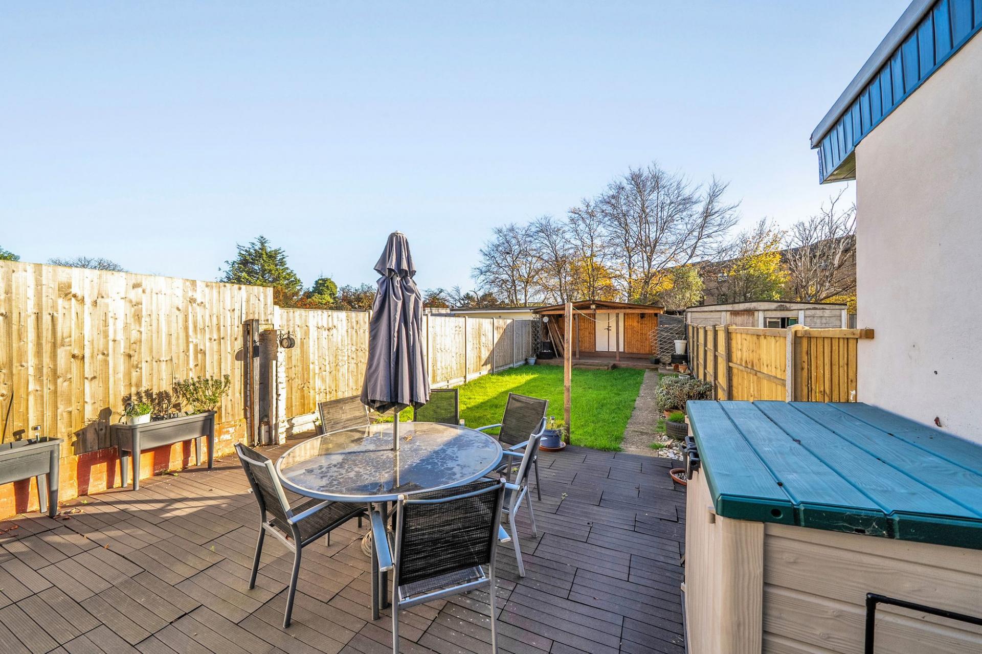 - Rear garden with covered decking area