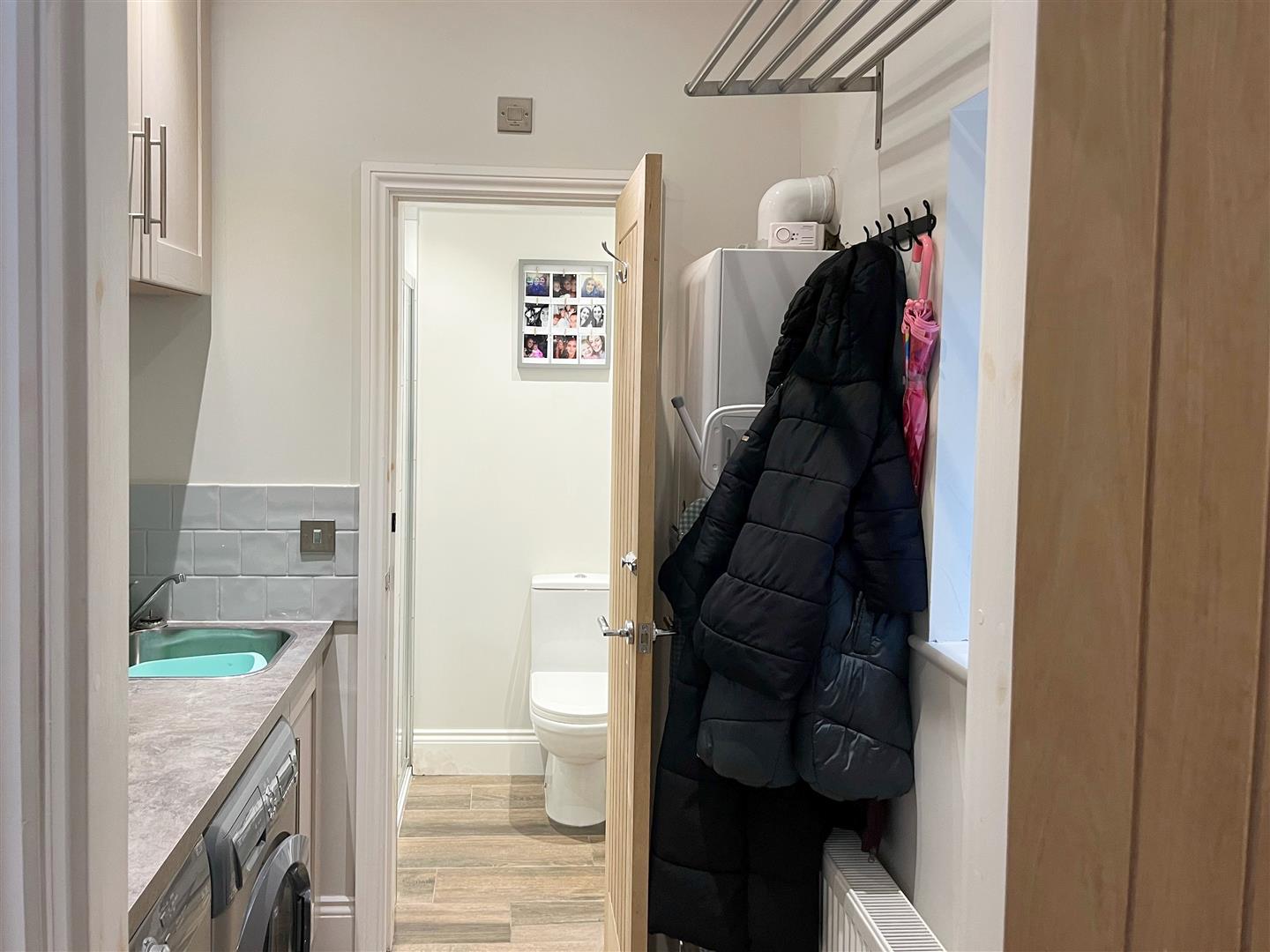 Utility Room - 1.843 x 1.831 (6'0" x 6'0") - Wall and base units. Stainless steel sink. Plumbing for washing machine and space for dryer. Boiler with full service history. UPVC double glazed window to side elevation.