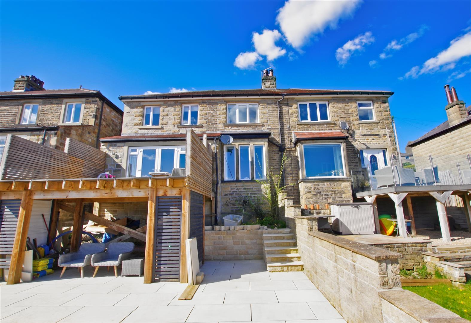 Situated in the heart of Greetland is this impressive, four bedroom, extended semi-detached family home. This stunning family home benefits from a luxurious dining kitchen, open valley view to the rear which can be enjoyed from the lounge and the decked terrace which leads off the family room. There are four double bedrooms and a stylish house bathroom with twin vanity wash hand basins. There is parking for one car to the rear and a newly laid patio in the garden.