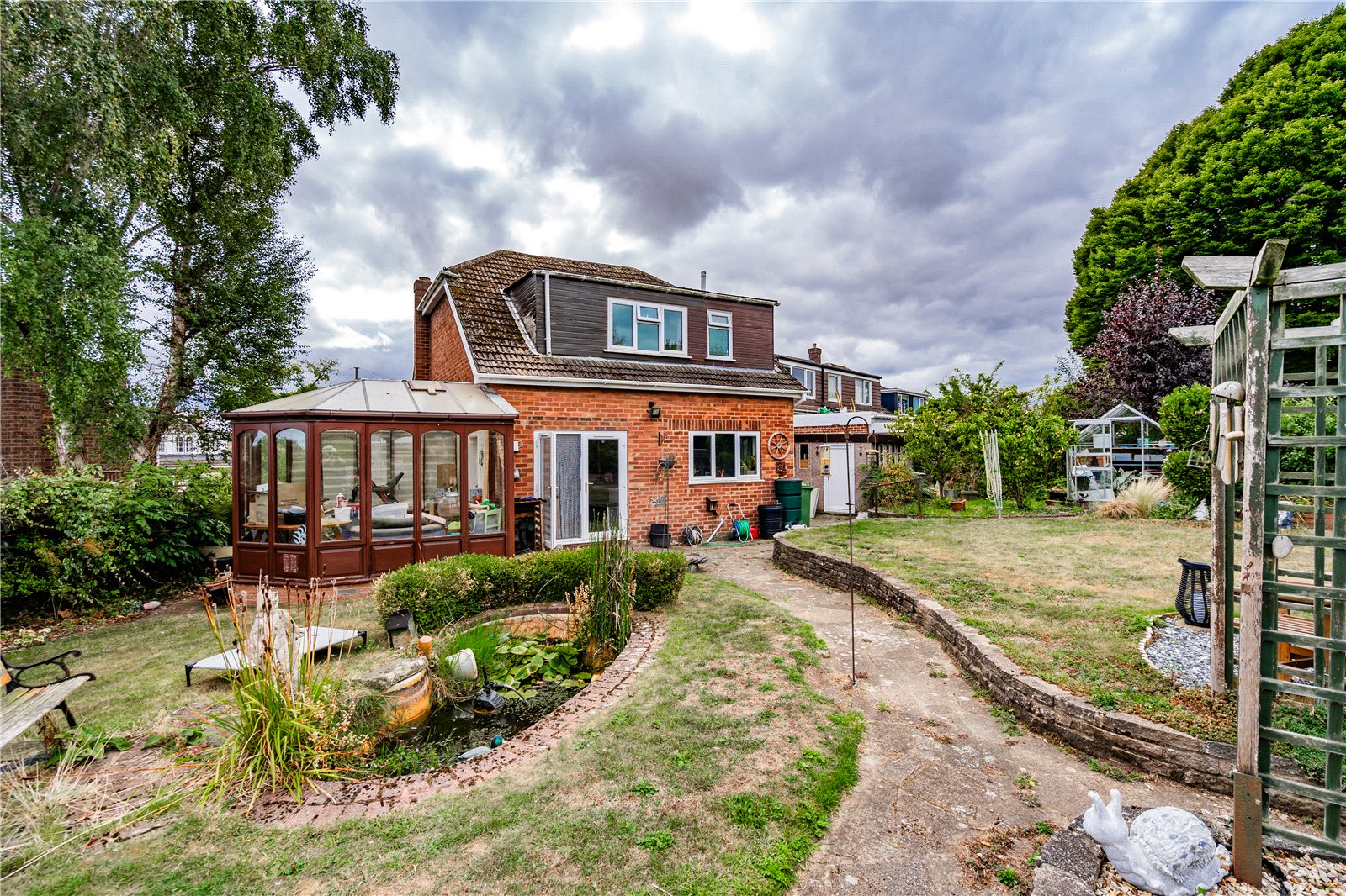 Externally the property is situated on a generous plot with ample off road parking and a garage to the front as well as a large rear corner plot with an abundance of natural shrubbery and pond. The rear garden is very private with woodland located to the rear.