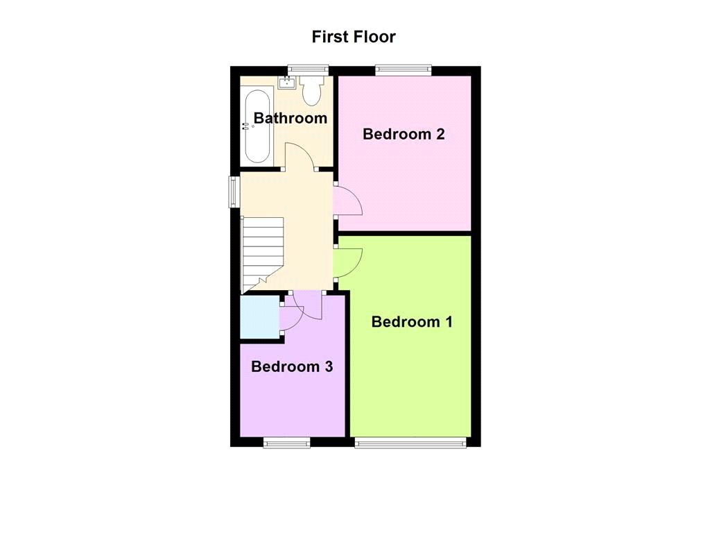 The first floor accommodates the 3 bedrooms and the family bathroom.