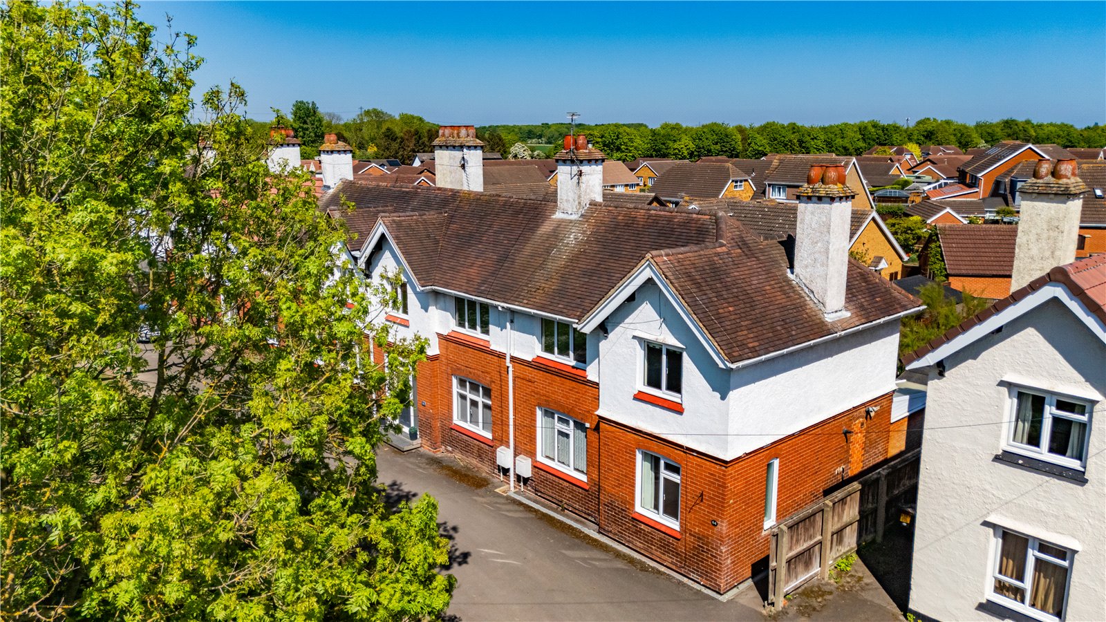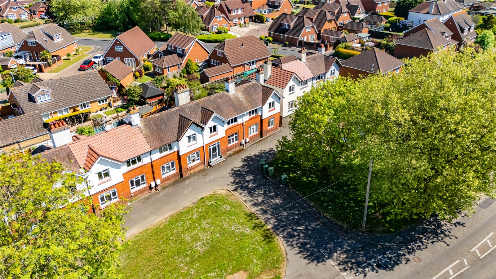 - Set back from the road with green space to the front