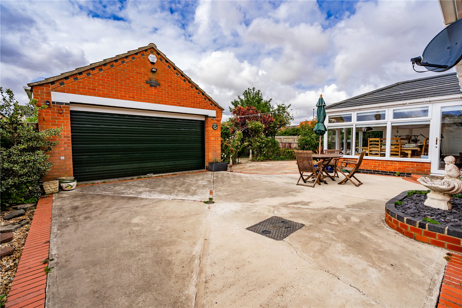 - Detached double garage with up-and-over door