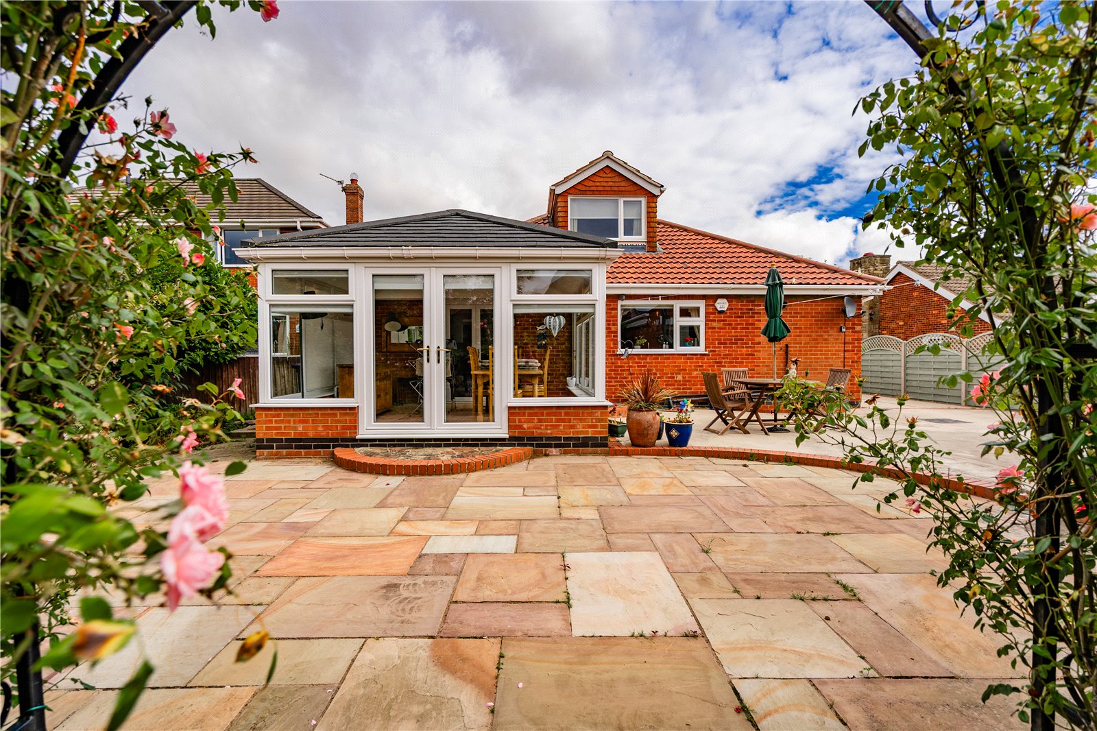 - Brick and uPVC sunroom overlooking the garden