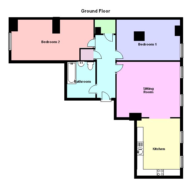 - Two-bedroom ground floor flat