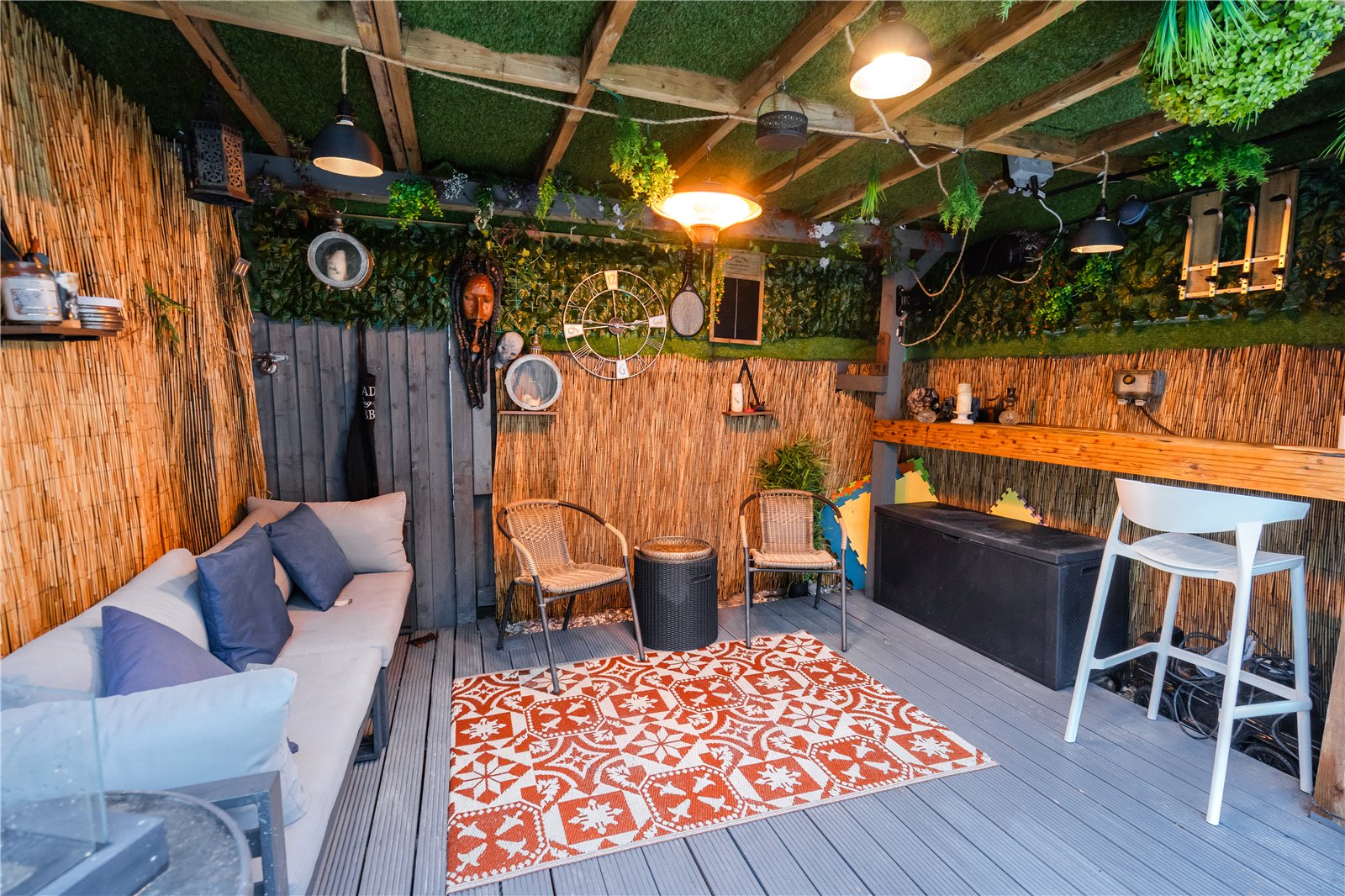 To the rear, the property boasts a fully paved, low-maintenance garden, designed for enjoyment and entertaining. A standout feature is the bar area, creating an excellent space for social gatherings, summer evenings, and outdoor entertaining with minimal upkeep required.
