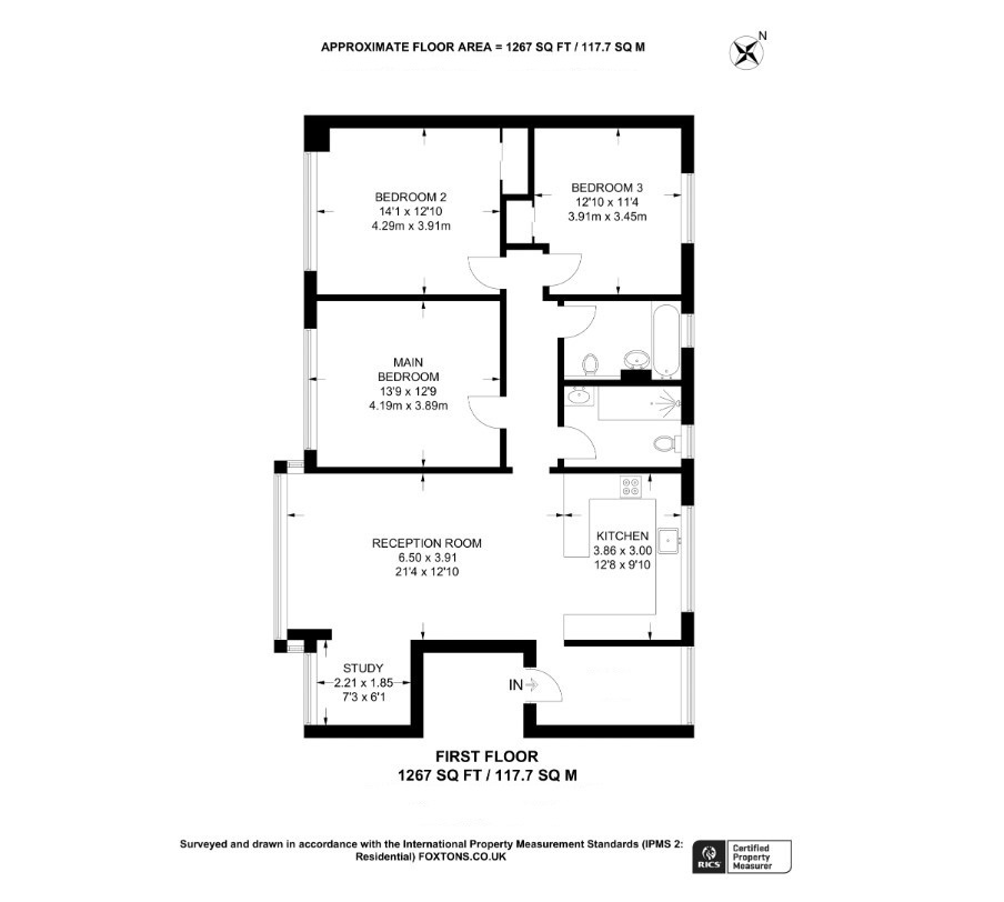 The property comprises a generous sized open plan lounge and modern fully fitted kitchen with integrated oven and hob, and fridge freezer, study, three double bedrooms and modern bathroom.