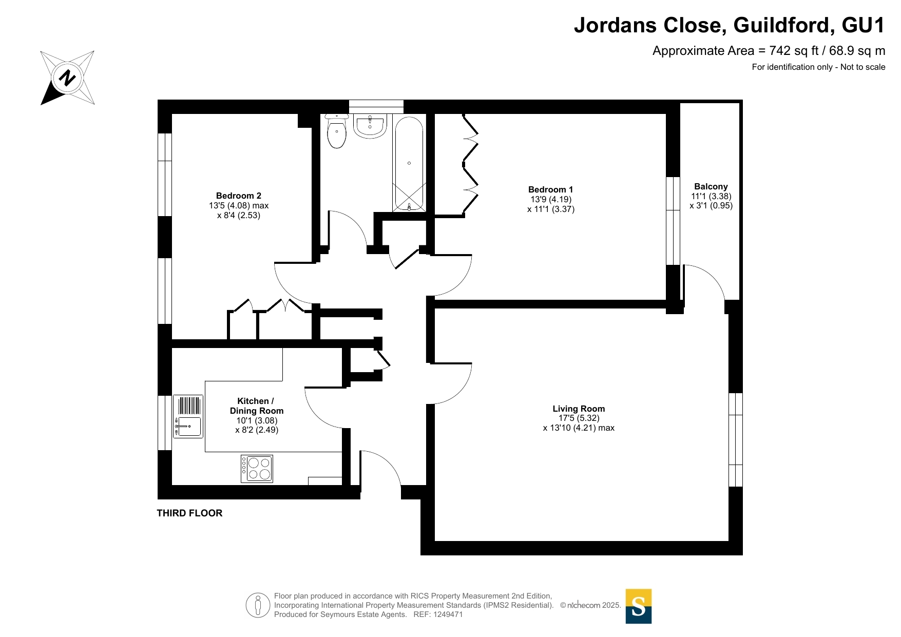 This well-presented third-floor apartment in Jordans Close, Guildford, offers a bright and spacious living environment with a well-thought-out layout designed for comfort and functionality. The property consists of two generously sized bedrooms, a large living room with ample natural light, and direct access to a private balcony, providing an inviting space to relax and enjoy the surroundings. The kitchen and dining area have been recently re-fitted to a high standard, offering modern appliances, stylish cabinetry, and a practical layout ideal for cooking and entertaining.The apartment is in good condition, benefiting from gas central heating, which ensures a warm and energy-efficient home throughout the year. A key advantage of the property is the additional loft storage, which provides extra space for keeping household items organized and out of sight. The communal gardens surrounding the building are well maintained, offering a green and peaceful outdoor space that residents can enjoy.The bathroom features a full suite, including a bathtub, catering to both relaxation and practicality. The entrance hallway is well-sized, providing easy access to all rooms and offering potential for additional storage solutions. The property's overall design ensures a balance of functionality and style, making it suitable for individuals, couples, or small families seeking a comfortable and convenient home in Guildford.Situated in a desirable residential area, the apartment benefits from a well-connected location, with access to local amenities, public transport, and green spaces. With its modern upgrades, ample storage, and inviting communal areas, this property presents an excellent opportunity for those looking for a well-maintained and stylish home in a sought-after location.
