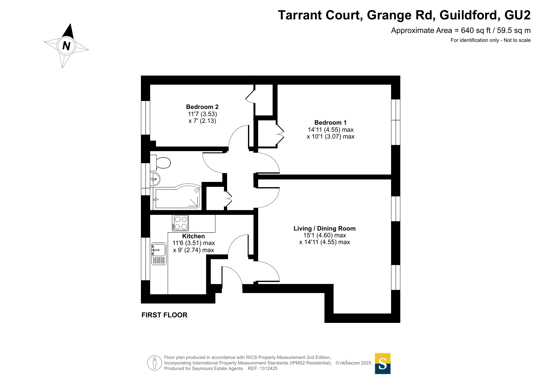The home offers a thoughtfully laid-out interior with generous proportions, ideal for comfortable living. As you enter, the bright and airy reception room welcomes you with its abundant natural light streaming through large windows, enhancing the sense of openness. This area is perfect for both relaxing and entertaining.The modern fitted kitchen is well-appointed with a combination of integrated appliances and ample cabinetry, offering practicality as well as style. Its layout allows for ease of movement while preparing meals and enjoys a pleasant view through the wide kitchen window.There are two well-sized bedrooms, both featuring large windows that ensure they remain light-filled throughout the day. The primary bedroom is notably generous in size, offering flexibility for furnishings and storage. The second bedroom, while slightly smaller, is still spacious and would suit either a guest room or a home office setup.The family bathroom is fitted to a modern standard, with a contemporary suite including a P-shaped bath with shower, stylish tiling, and chrome fittings, creating a clean and comfortable space.Set on the first floor, the apartment also benefits from a quiet position within a block of similarly well-maintained homes, with neat green surroundings and a private entrance. Additionally, the property includes a garage located in a nearby block, offering secure parking or extra storage. This property provides a desirable blend of comfort, convenience, and tranquillity in a sought-after Guildford location.