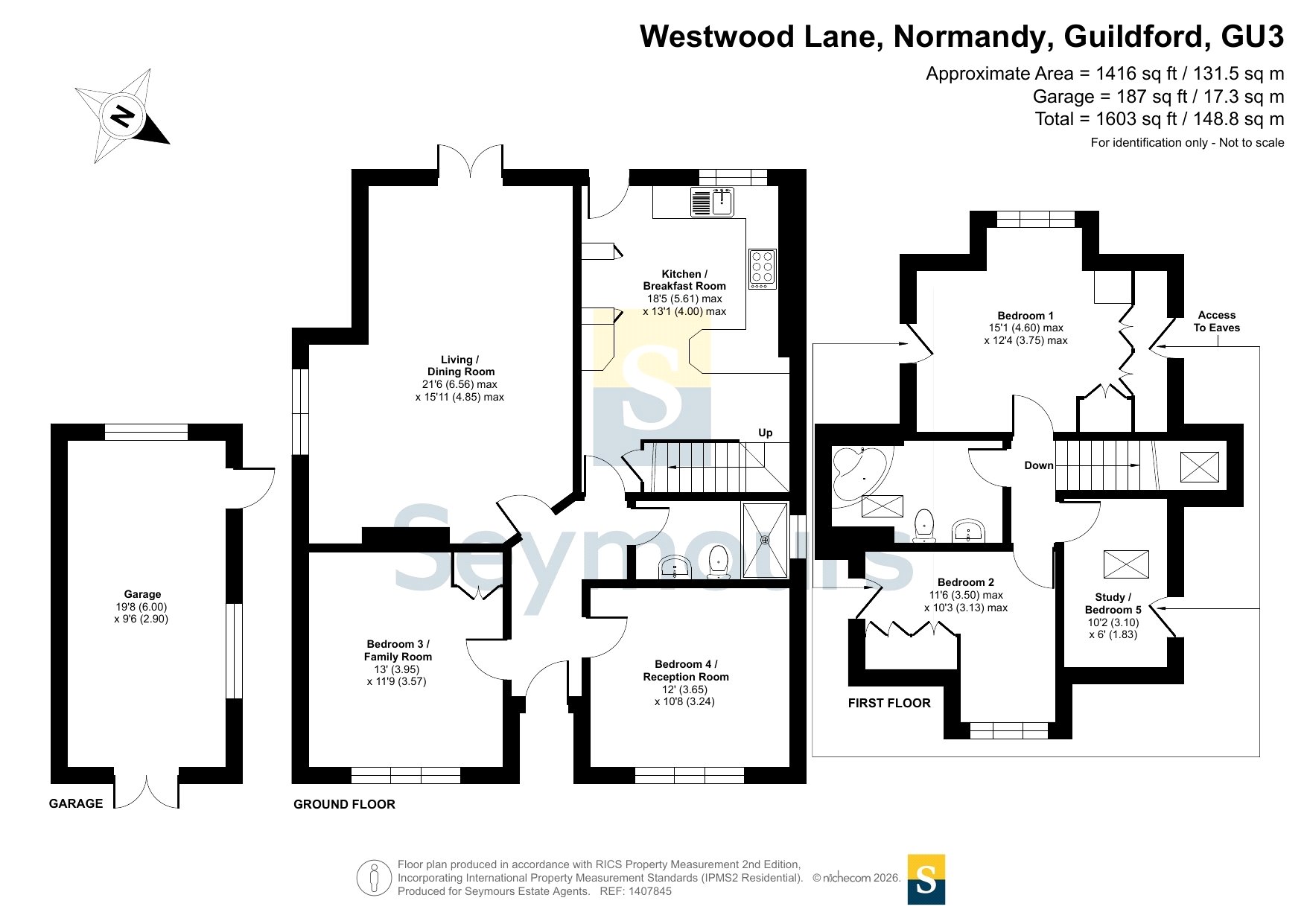 Set within the ever-popular village of Normandy, this beautifully presented detached family home offers versatile and well-balanced accommodation, ideal for modern family living and those seeking a semi-rural lifestyle with excellent connectivity.Normandy is a highly regarded Surrey village, known for its welcoming community feel, local schools and easy access to open countryside. Surrounded by attractive woodland and countryside walks, it is particularly appealing to those who enjoy outdoor pursuits, while Wanborough station provides convenient rail links into London via Guildford, making it an excellent choice for commuters. Local amenities are close at hand, and the village strikes a rare balance between rural charm and everyday practicality.The property itself must be seen to be fully appreciated. On entering, the entrance hall features wood flooring and provides access to the principal ground floor rooms. To the front of the property are two generous double bedrooms or reception rooms, both enjoying double glazed windows, wood effect flooring and radiators, offering flexibility for guests, home working or additional living space.The heart of the home is the impressive lounge/diner, a bright and inviting space with a side aspect window, double glazed doors opening onto the garden, wood effect flooring, radiator and a feature fireplace, creating an ideal setting for both everyday living and entertaining. To the rear, the kitchen/breakfast room is well arranged with a range of units, breakfast bar, space for appliances and tiled flooring, with a window and door providing direct access to the garden. Stairs lead from here to the first floor, and the ground floor is completed by a stylish shower room with walk-in shower, vanity unit, tiled walls and heated towel rail.Upstairs, the first floor offers three further bedrooms and a family bathroom. The principal bedrooms benefit from fitted wardrobes, while the remaining bedroom enjoys a Velux style window. The bathroom is fitted with a corner bath, vanity unit, low level WC, tiled walls and a heated towel rail, with natural light provided by a Velux style window.Outside, the outstanding rear garden is a particular highlight, featuring a patio area ideal for outdoor dining with the remainder laid mainly to lawn and enclosed by panel fencing, offering both privacy and space for families. To the front, there is off-road parking for several vehicles, along with a generous garage fitted with power and light.Additional benefits include gas central heating, double glazing throughout and excellent scope to extend, subject to the usual planning consents. Combining generous accommodation, a beautiful garden and a sought-after village setting, this home represents a fantastic opportunity, and viewings are highly recommended to fully appreciate both the property and its surroundings.