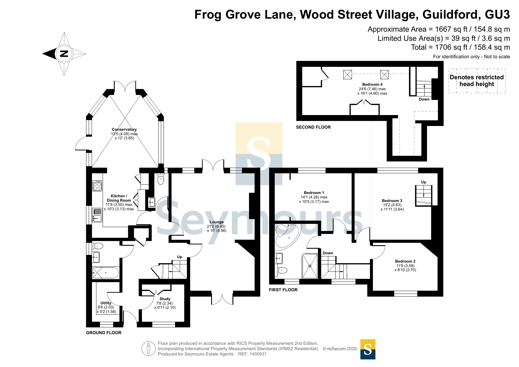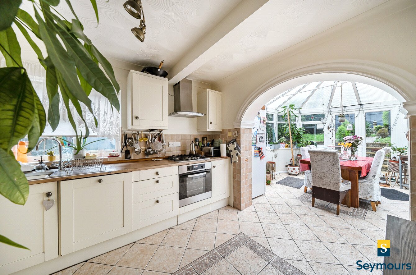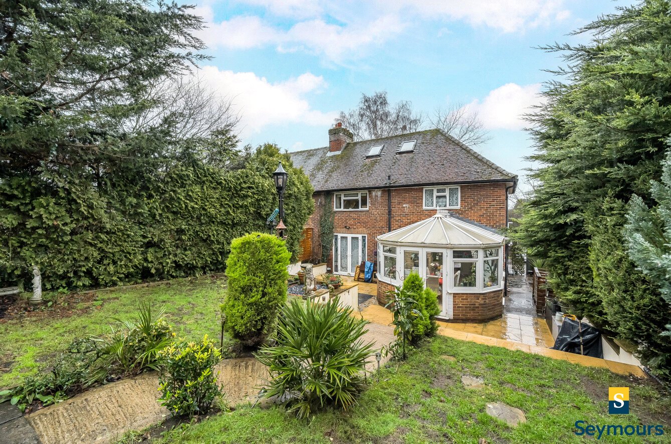 Situated along a sought-after semi-rural lane in the popular village of Wood Street Village, this attractive and extended family home enjoys a generous plot with ample driveway parking and well-established gardens. The property is ideally placed for those seeking a village lifestyle with convenient access to Guildford, nearby countryside walks and local amenities, while remaining well connected for commuters.The accommodation is well balanced and arranged over three floors, offering flexible living space suited to modern family life. On the ground floor, the main living room provides a welcoming space centred around a feature fireplace and flows naturally through an attractive archway into a further reception area with doors opening onto the rear garden. The kitchen is fitted with a range of units and work surfaces and opens into a light-filled conservatory that works well as a dining area, enjoying views and access to the garden. Additional ground floor rooms provide useful versatility, including space suitable for a study or utility use, alongside bathroom facilities.The first floor offers several comfortable bedrooms, each well proportioned and served by a family bathroom. The layout allows for both family living and home working, with good natural light throughout. Stairs rise to the upper level where a further bedroom provides an excellent additional space, ideal for guests, older children or a hobby room, benefitting from character features and a pleasant outlook.Outside, the rear garden is a particular highlight, arranged over different levels with areas of patio and lawn, well stocked borders and mature planting providing privacy and an attractive setting for outdoor entertaining. Overall, the property combines character, space and flexibility in a desirable village location, making it an appealing choice for those looking to enjoy a countryside feel while remaining close to Guildford and surrounding villages.