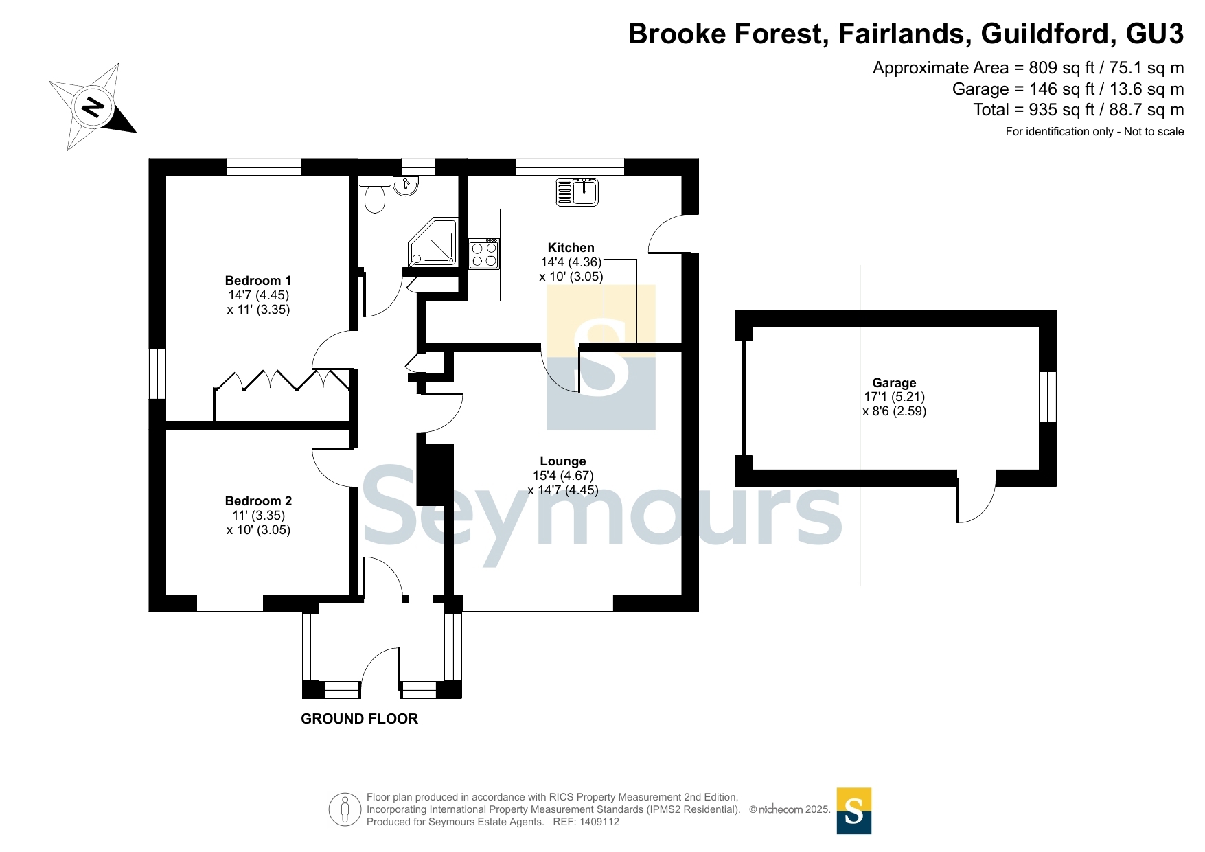 This attractive two bedroom detached bungalow occupies a wonderful position within the ever popular Fairlands area of Guildford, sitting on a generous south-facing corner plot which offers a great deal of natural light and a real sense of space both inside and out. The property also benefits from excellent parking provisions with driveway parking to the front, along with additional driveway parking leading to a garage positioned to the rear.The accommodation is well laid out and begins with an entrance hallway which provides access to all principal rooms. The living room is a bright and welcoming space, enjoying a pleasant outlook to the front and offering ample room for both seating and dining furniture, making it ideal for relaxing or entertaining. The kitchen is modern in style with good storage and worktop space, and also offers direct access out to the rear garden, providing a practical connection between indoor and outdoor living.There are two double bedrooms, both offering comfortable accommodation and flexibility for use as a main bedroom, guest room or home office. The shower room has been fitted with a contemporary suite and completes the internal layout.Outside, the bungalow truly comes into its own with a beautifully positioned south-facing garden that enjoys sunshine throughout the day. The garden is mainly laid to lawn with a patio seating area, making it perfect for outdoor dining, entertaining or simply enjoying the peaceful setting. The corner plot position provides an excellent sense of privacy, while the driveway and garage to the rear offer secure storage and further parking options.Brooke Forest is a sought-after residential road within Fairlands, well placed for local amenities, schools and green open spaces. The property is also conveniently located for access into Guildford town centre, with its wide range of shopping, restaurants and mainline station.
