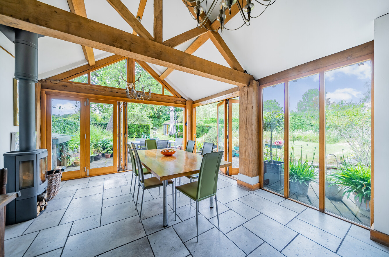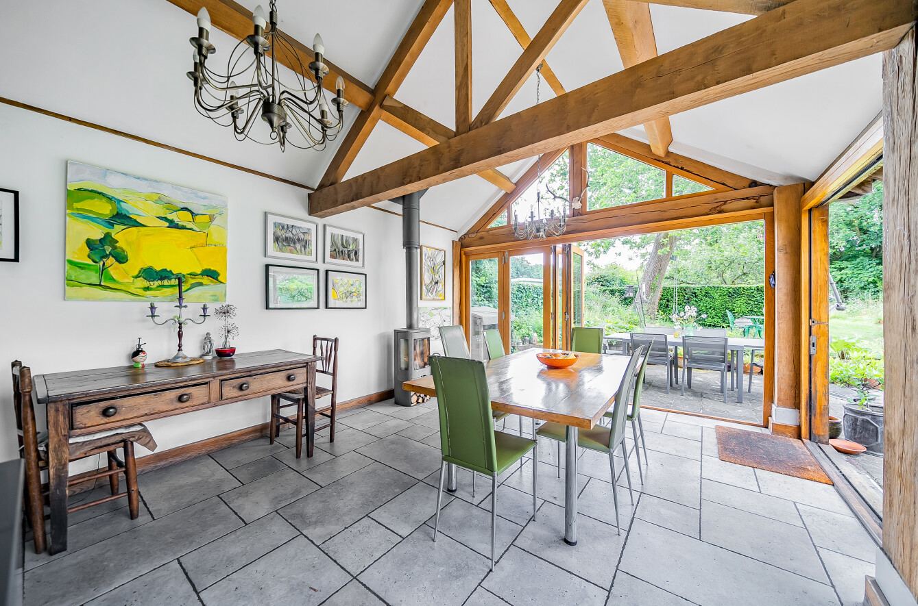 A charming country cottage steeped in history, 'Old Rickford' has been sympathetically modernised for contemporary living.Nestled among acres of common land and open fields, 'Old Rickford' is set back from the road amid glorious gardens. The main house, dating back to the 17th century, is Grade II listed and full of historic charm. It is complemented by a stunning oak-framed kitchen/dining room with bi-fold doors that open onto the patio and gardens.Upon entering 'Old Rickford', you will find a small boot room leading to a large, low-beamed reception hall. The double-aspect sitting room features a much-used inglenook fireplace, while a third reception room offers flexibility as a formal dining room, home office, or fourth double bedroom, with a separate WC and a shower room nearby. The utility room houses the washing machine and boiler.