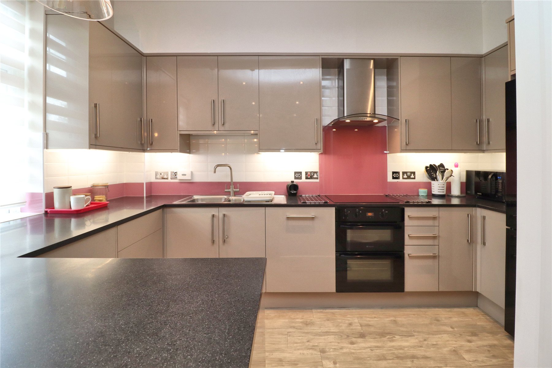 - Open-plan reception room and kitchen