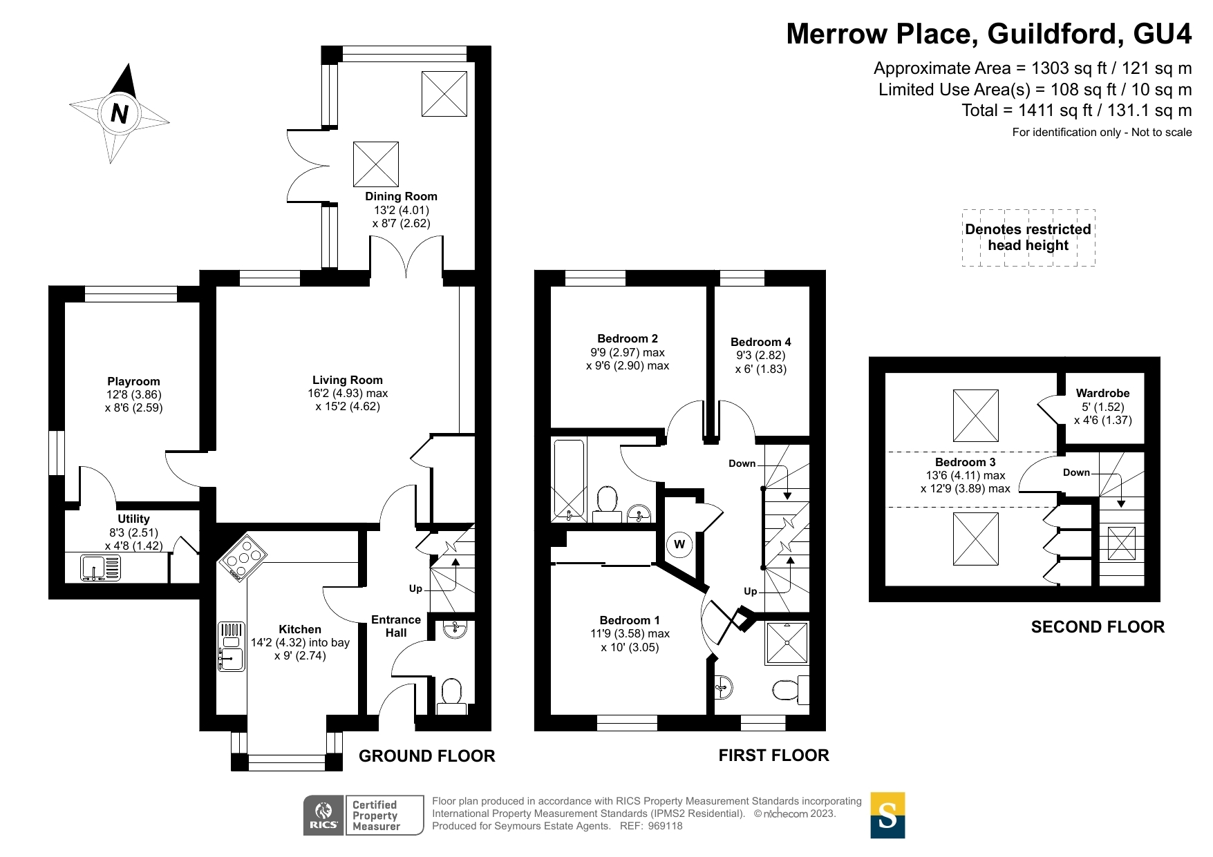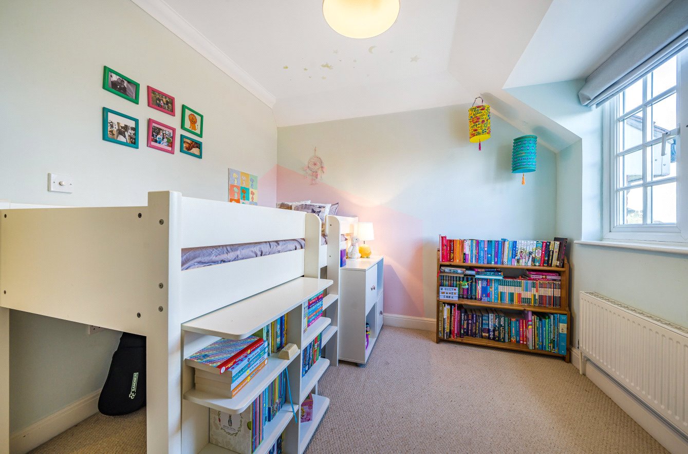 Situated in this private residential road within the centre of Merrow Village, enjoying views onto a pretty communal green, a well-presented four-bedroom semi-detached house offering spacious family accommodation with a good-sized living room, Shaker-style kitchen with underfloor heating, dining room/conservatory, en-suite to the master bedroom, secluded south-facing garden and driveway parking with electric car charging point. The property is ideally located close to popular schools and local amenities. Planning permission is granted for a double-storey extension.The front door opens into the entrance hall with a cloakroom to the front aspect and stairs to the first floor. The kitchen overlooks the front and is fitted with a range of Shaker-style eye and base level units comprising an integrated double oven, integrated fridge/freezer and dishwasher, with the added benefit of underfloor heating. There is space for a breakfast table. The good-sized living room enjoys a view over the garden, with French-style doors opening into the dining room. A double-aspect playroom/family room with a utility room off, which includes space for an additional freezer, completes the ground-floor accommodation.On the first floor, the front-aspect double bedroom has the benefit of an en-suite shower room, as well as a range of built-in wardrobes. There is a further double bedroom and a single bedroom, both enjoying views over the rear garden. The family bathroom is fitted with a white suite comprising a bath with shower over, pedestal wash hand basin and WC. Stairs lead to the second floor where there is an additional double bedroom with Velux-style windows, benefitting from fitted wardrobes as well as a large wardrobe/storage cupboard.Outside, the rear garden enjoys a south-facing aspect and has a decked patio making an ideal space for outdoor entertaining. This leads onto an area of lawn with flower and shrub borders, with boundaries enclosed by a mixture of brick walling and panelled fencing. Gated access leads to the front where the brick-paved driveway provides off-road parking and is fitted with an electric car charging point.Maintenance Charge: Approx £700 per annum for upkeep of Private Road.Merrow is a sought-after residential village located about two miles from the historic Town Centre and close to Merrow Downs and Guildford Golf Club. There are shops for day-to-day needs a five-minute walk away in Merrow Village, including a Marks & Spencer Food store, as well as a doctor's surgery. Popular schools such as George Abbot and St Peter's RC secondary are also within walking distance. There are also several leading independent schools such as the Royal Grammar and Guildford High School for Girls within a short drive. The Spectrum Leisure Complex offering a variety of activities is within two miles, as is access onto the A3 northbound carriageway leading to London and the M25 interchange, which is gained from the outskirts of Burpham. Guildford and West Clandon train stations are both within a short drive.