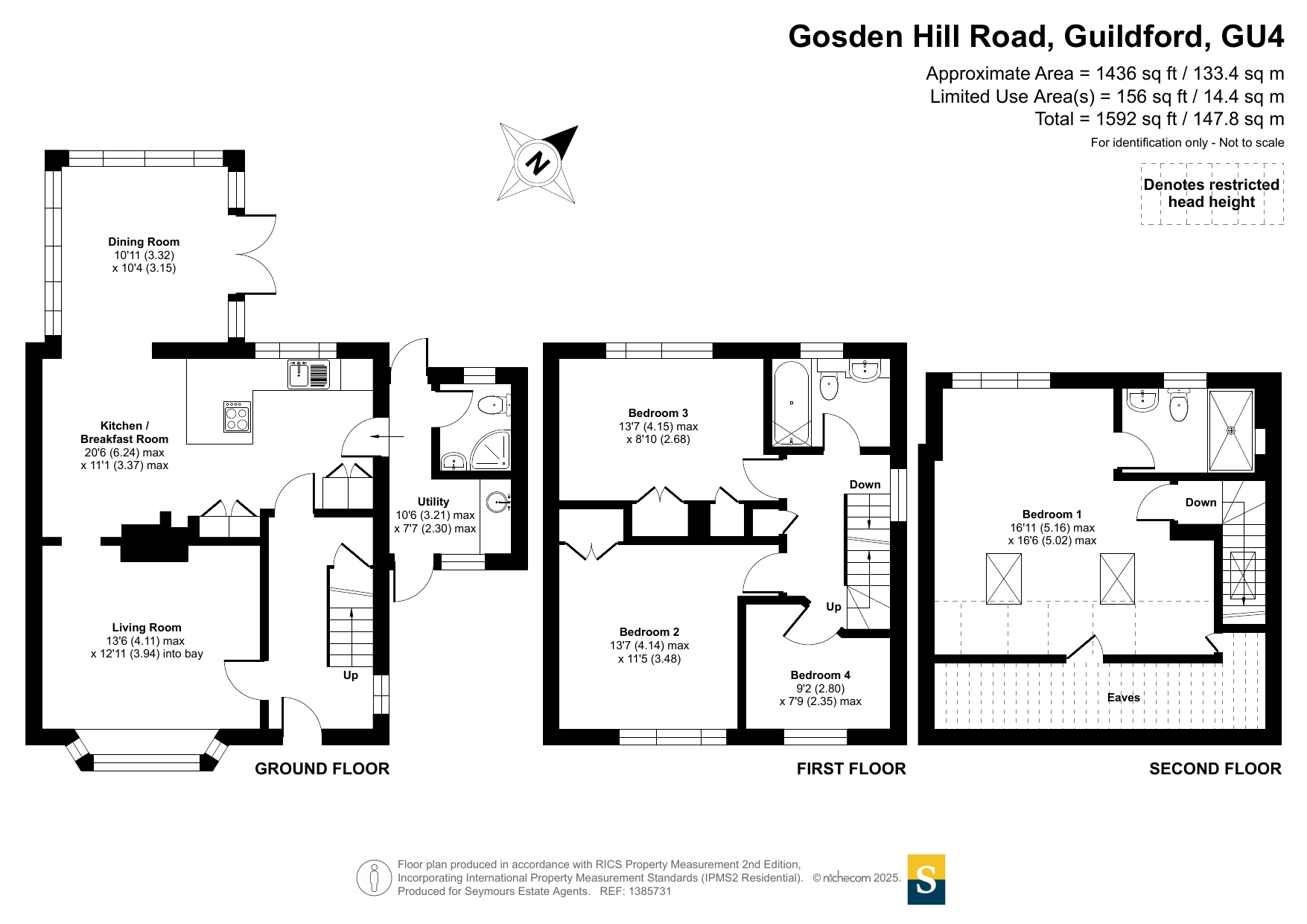 This semi-detached four-bedroom home in Burpham is arranged over three well-designed levels and combines modern style with comfortable family living. Set close to excellent local schools and everyday amenities, the property also benefits from a private garden and driveway parking, making it practical as well as attractive.Inside, the house has been recently refurbished and is beautifully decorated throughout. The living room feels warm and welcoming, enhanced by a generous bay window that fills the space with natural light and a feature fireplace that adds character. The modern kitchen offers sleek black cabinetry, crisp white worktops and integrated appliances, creating a stylish and efficient cooking space. It flows seamlessly into a bright dining room with views of the garden, making it ideal for family meals and entertaining. A separate utility room provides valuable extra storage and laundry space, and there is an additional shower room on this level for everyday convenience.The first floor hosts three bedrooms, two comfortable doubles featuring built-in storage, and a smaller room perfectly suited to a study, nursery or guest accommodation. A contemporary family bathroom with elegant marble-style tiling completes this floor.At the top of the house is the spacious master bedroom, filled with natural light thanks to roof windows and rear-facing windows. Its sloped ceilings add charm while still offering good usable space. The adjoining en-suite continues the home's modern aesthetic with dark marble-style tiles and a step-in shower.Outside, the garden has been thoughtfully landscaped with a balance of patio and lawn, creating an inviting setting for outdoor dining, relaxation and entertaining. Overall, this is a stylish, well-finished home offering both comfort and convenience in a highly desirable location.