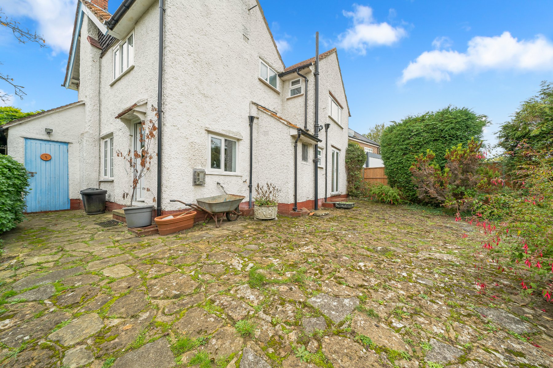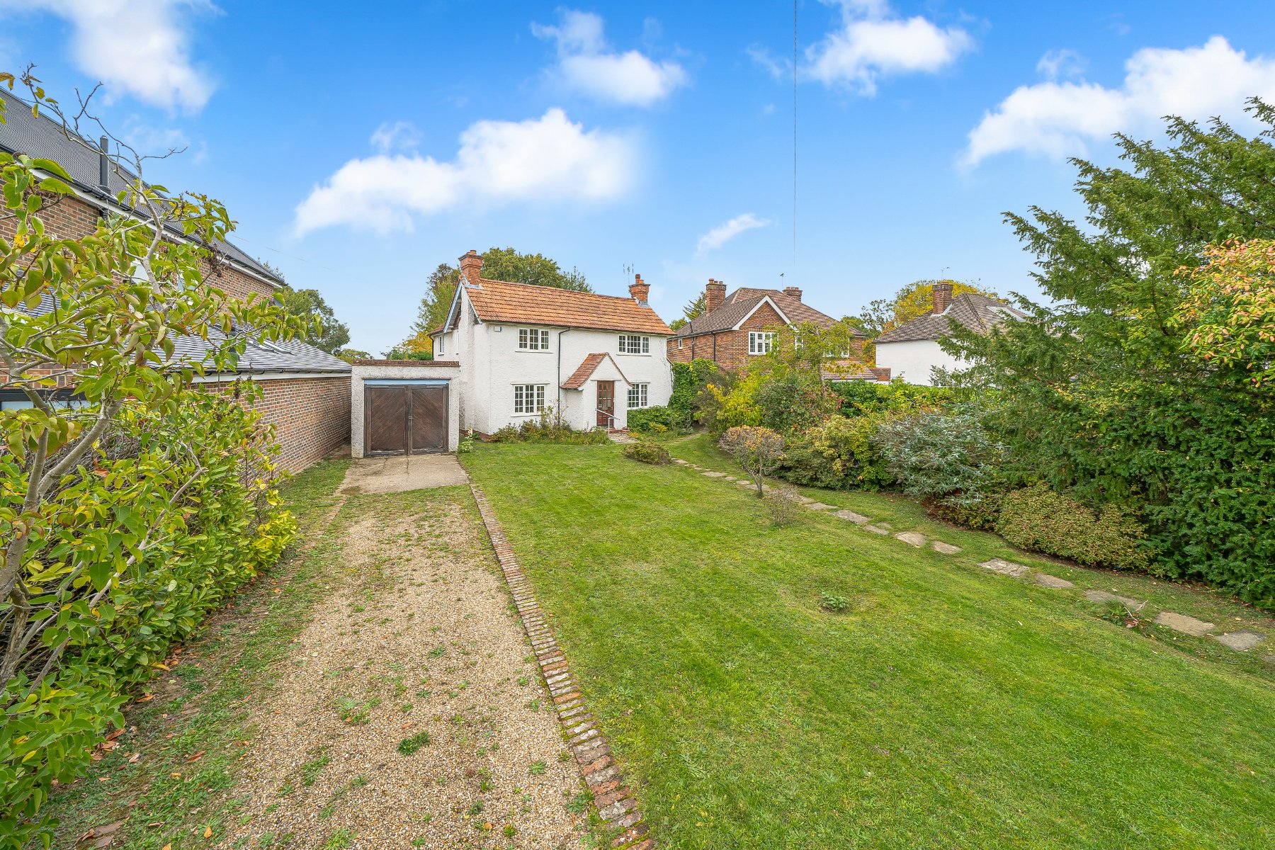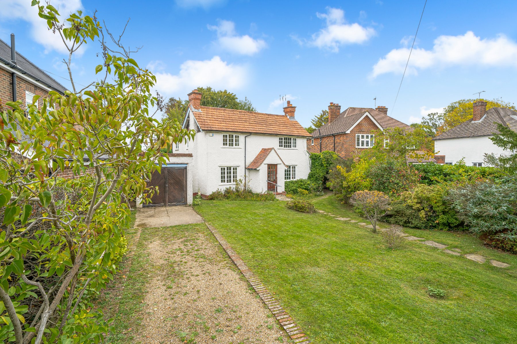 Tucked away in the charming village of Burpham, this detached character cottage offers a delightful blend of traditional features and untapped potential. With its inviting façade, long private driveway, and leafy front garden framed by hedges and trees, the property immediately sets a tranquil tone. Its character and charm lay the perfect foundation for a home that could be truly exceptional with the right vision.Inside, the cottage exudes warmth and rustic charm. Two separate living rooms each showcase exposed dark wood beams and handsome brick fireplaces, evoking the timeless feel of a countryside retreat. The dining room adds a touch of elegance with its herringbone wood flooring and glass doors that open directly onto the garden, creating a seamless indoor-outdoor flow. The kitchen is practical and well laid out, featuring crisp white cabinetry and contrasting black countertops, an ideal canvas for anything from a stylish update to a full redesign that reflects your unique taste.Upstairs, four generously sized bedrooms offer versatility and character. Some rooms feature sloped ceilings that add architectural interest, while others include built-in storage or a convenient sink, ideal for guests or multi-use spaces. A separate bathroom and toilet complete the upper floor, ensuring functionality for family living.The rear garden is the true gem of the property. Stretching out behind the house, it boasts mature trees, a serene pond, and ample space for landscaping or outdoor entertaining. With its peaceful setting and charming features, this cottage is a canvas waiting to be transformed into a beautiful, bespoke home.