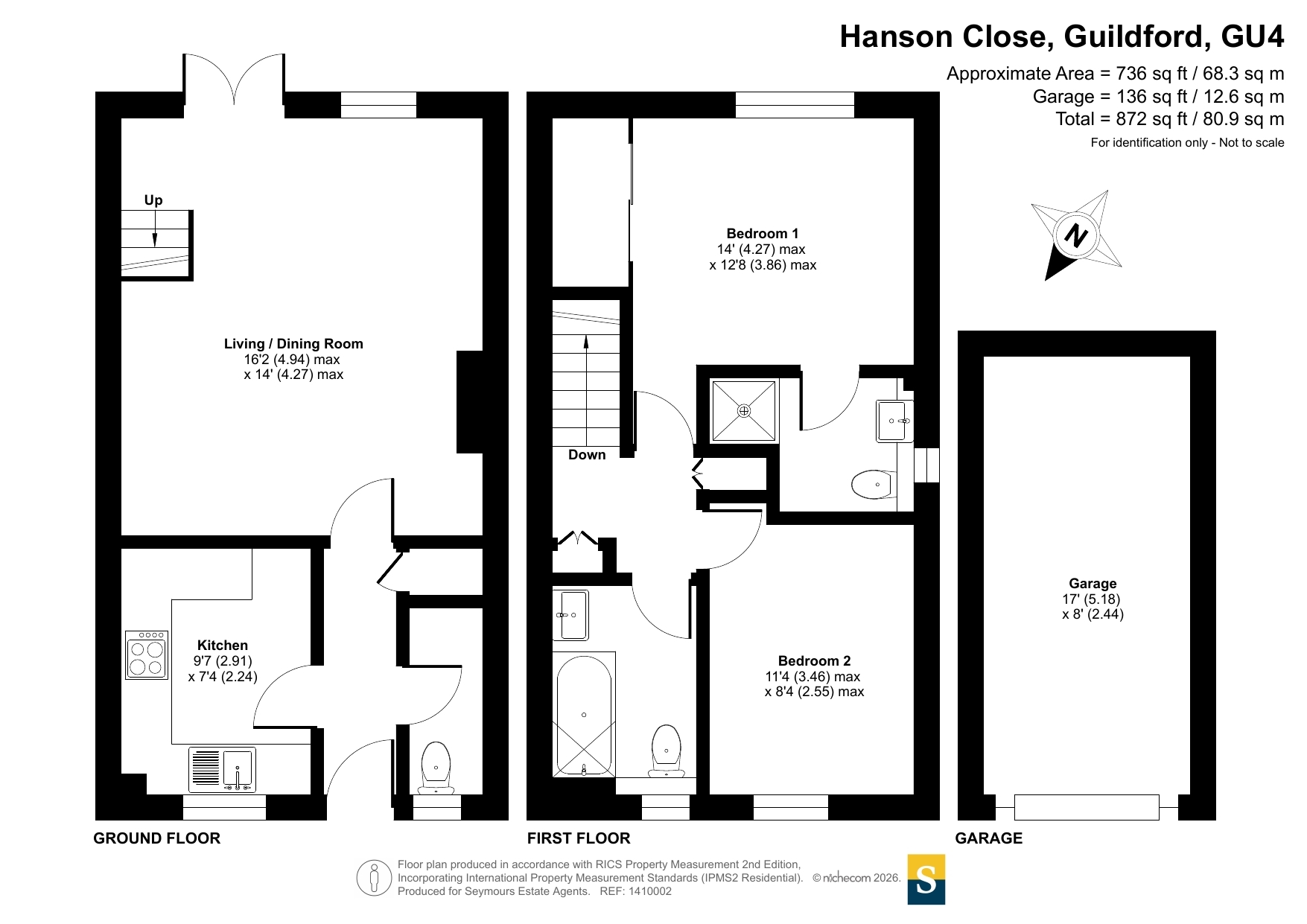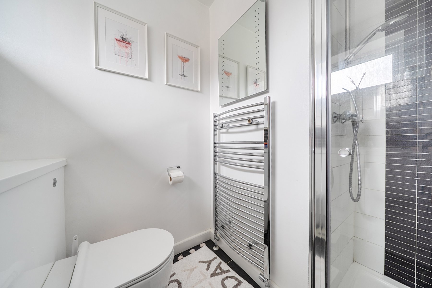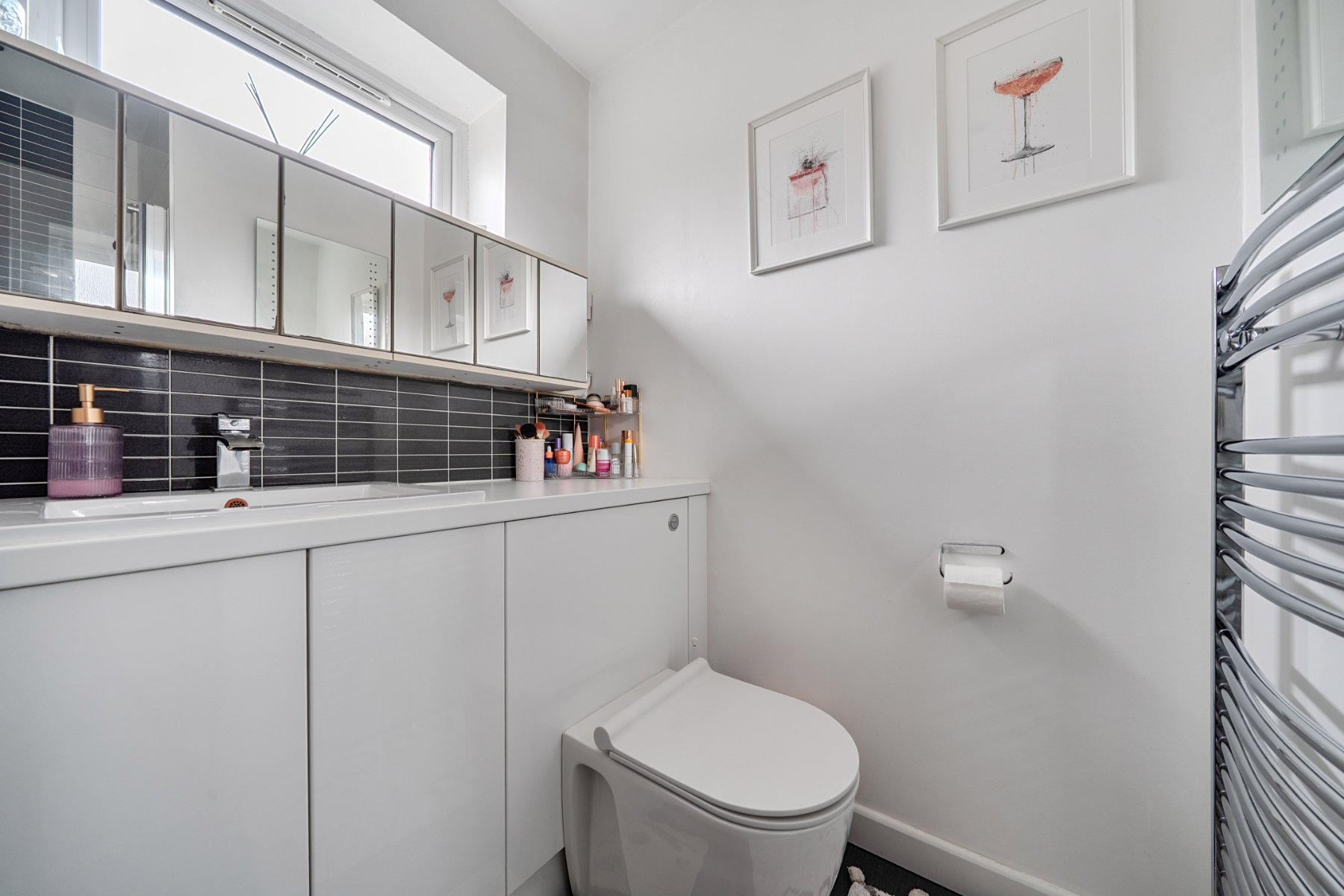 This semi-detached home in Burpham has been thoughtfully maintained and offers a warm, contemporary feel throughout. Its position within the development provides a sense of privacy, while still benefiting from residents' parking, a garage and a generous rear garden that feels like a natural extension of the living space.Inside, the kitchen immediately stands out. The sleek white cabinetry paired with dark countertops creates a clean, modern look, and the practical U-shaped layout gives you plenty of workspace for cooking and entertaining. The living and dining area is equally inviting, with laminate flooring, a feature wallpapered wall, and double glass doors that open directly onto the garden, filling the room with natural light. A convenient WC completes the ground floor.Upstairs, the main bedroom feels bright and welcoming, enhanced by built-in wardrobes with mirrored sliding doors that add both style and functionality. Its en-suite features a step-in shower, offering a touch of luxury and privacy. The second bedroom is neutrally decorated, making it a versatile space, ideal as a guest room, nursery, or home office. The main bathroom continues the home's clean aesthetic, with white tiled walls, dark wood-effect flooring, and crisp white fittings.Outside, the garden offers a lovely balance of practicality and charm. A decked area provides the perfect spot for outdoor dining or relaxing, while the lawn is bordered by planting beds that soften the space and add colour through the seasons. Overall, it's a well-presented home that blends comfort, style, and thoughtful design.