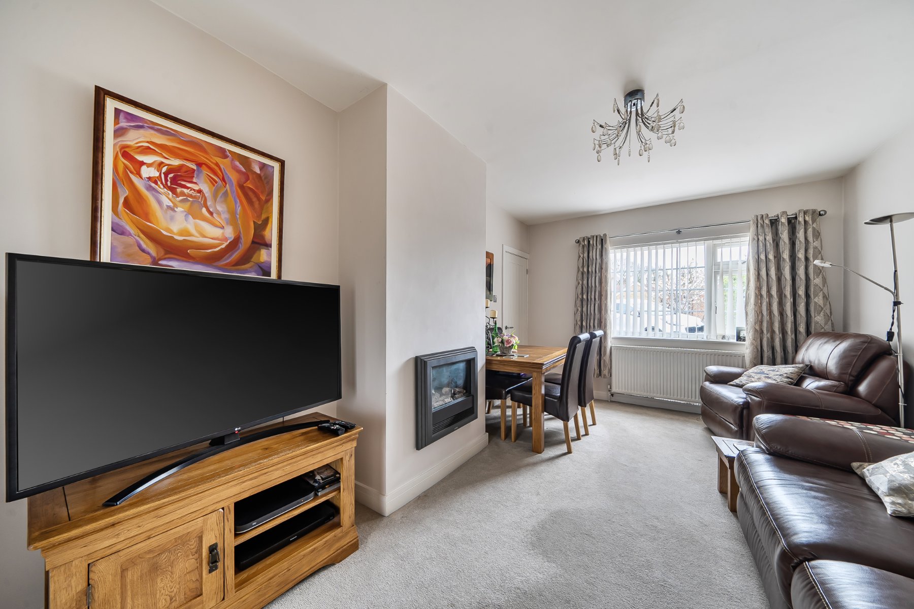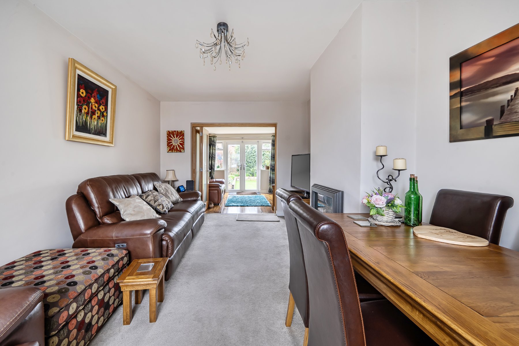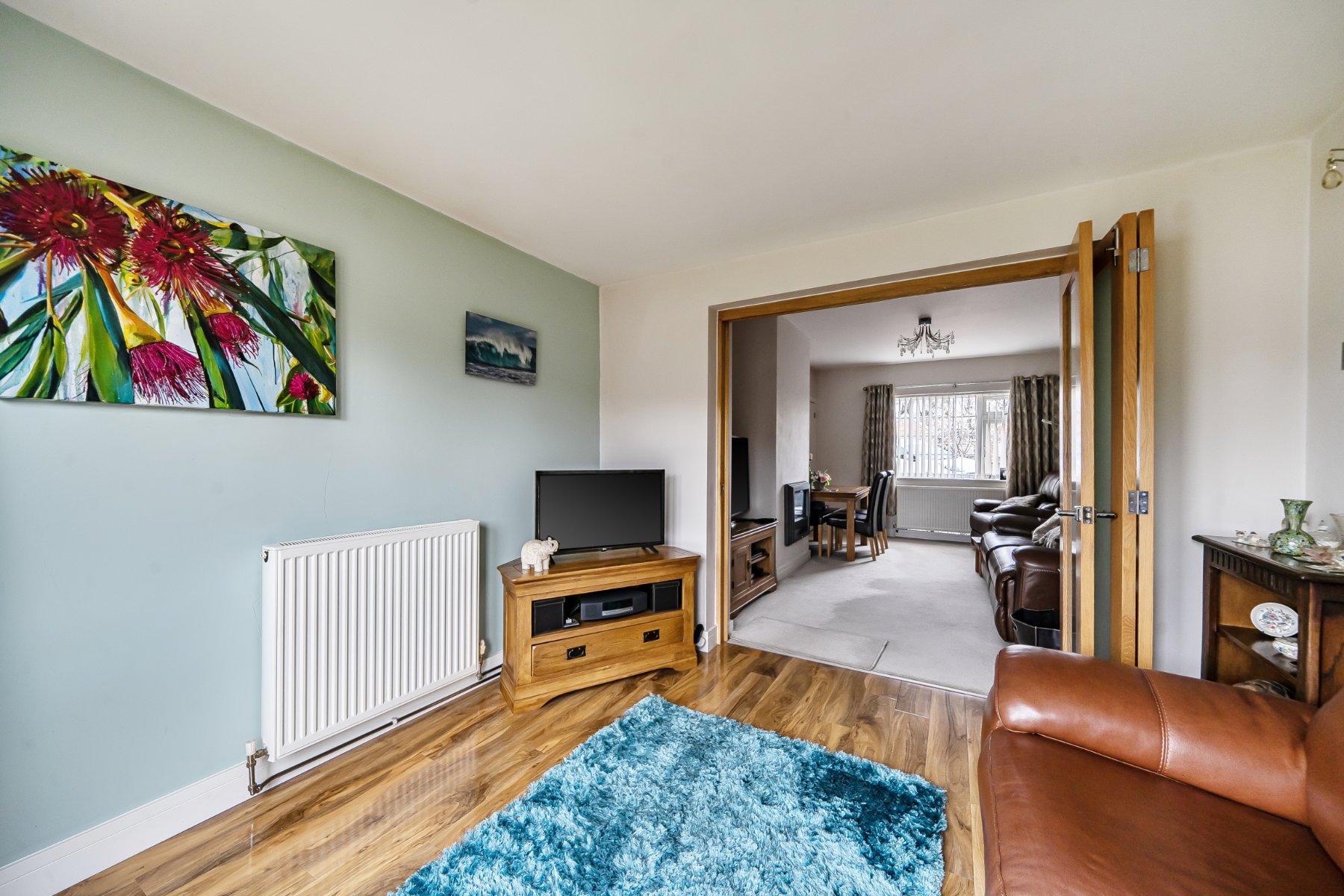 Inside, the home features a bright and welcoming living and dining room, offering a versatile space for relaxing and entertaining. This area flows naturally into a sitting room at the rear, creating an additional reception space that enjoys views over the garden and enhances the sense of light throughout the home.