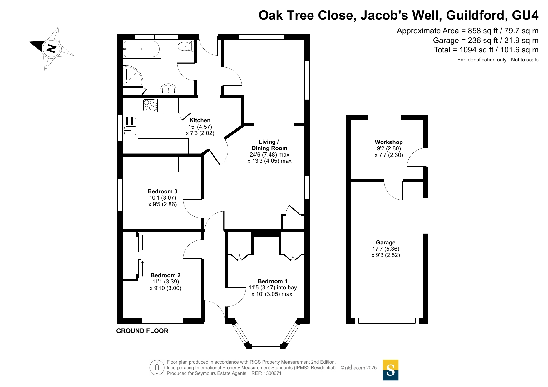 Nestled in the desirable village of Jacobs Well, this spacious three-bedroom bungalow offers a fantastic opportunity for buyers looking to put their own stamp on a property. The home presents generous proportions and a well-considered layout, making it perfectly suited for families or downsizers. It is positioned on a sizeable plot that offers both practicality and potential.One of the standout features of this property is the expansive rear garden. Mature and full of promise, it includes a greenhouse and a shed, ideal for keen gardeners or those looking for outdoor storage. A paved patio area provides space for seating and outdoor dining, making it a lovely spot for entertaining or relaxing in the warmer months. The property also benefits from a long driveway to the side, leading to a garage which offers valuable additional storage or workshop potential.Inside, the kitchen is functional and spacious, featuring ample cupboard space behind traditional wood-effect cabinets and complemented by sand-coloured tiled flooring. The adjoining living and dining room is bright and welcoming, thanks to large windows that flood the space with natural light and offer delightful views of the rear garden.The three bedrooms are all well-proportioned. Bedroom one is positioned at the front of the home and features a charming bay window that adds character and fills the room with light. Built-in wardrobes offer excellent storage. Bedroom two mirrors the generous size of the master, while bedroom three, offers ample space for a bed and furnishings. The bathroom is fitted with both a separate bath and shower, and finished with white tiled flooring and blue-tiled walls, creating a classic and functional space.Overall, this property in Jacobs Well represents an excellent opportunity for renovation and modernisation in a highly sought-after location. With its large garden, flexible living space, and solid structure, it holds great potential for a stylish and comfortable home.