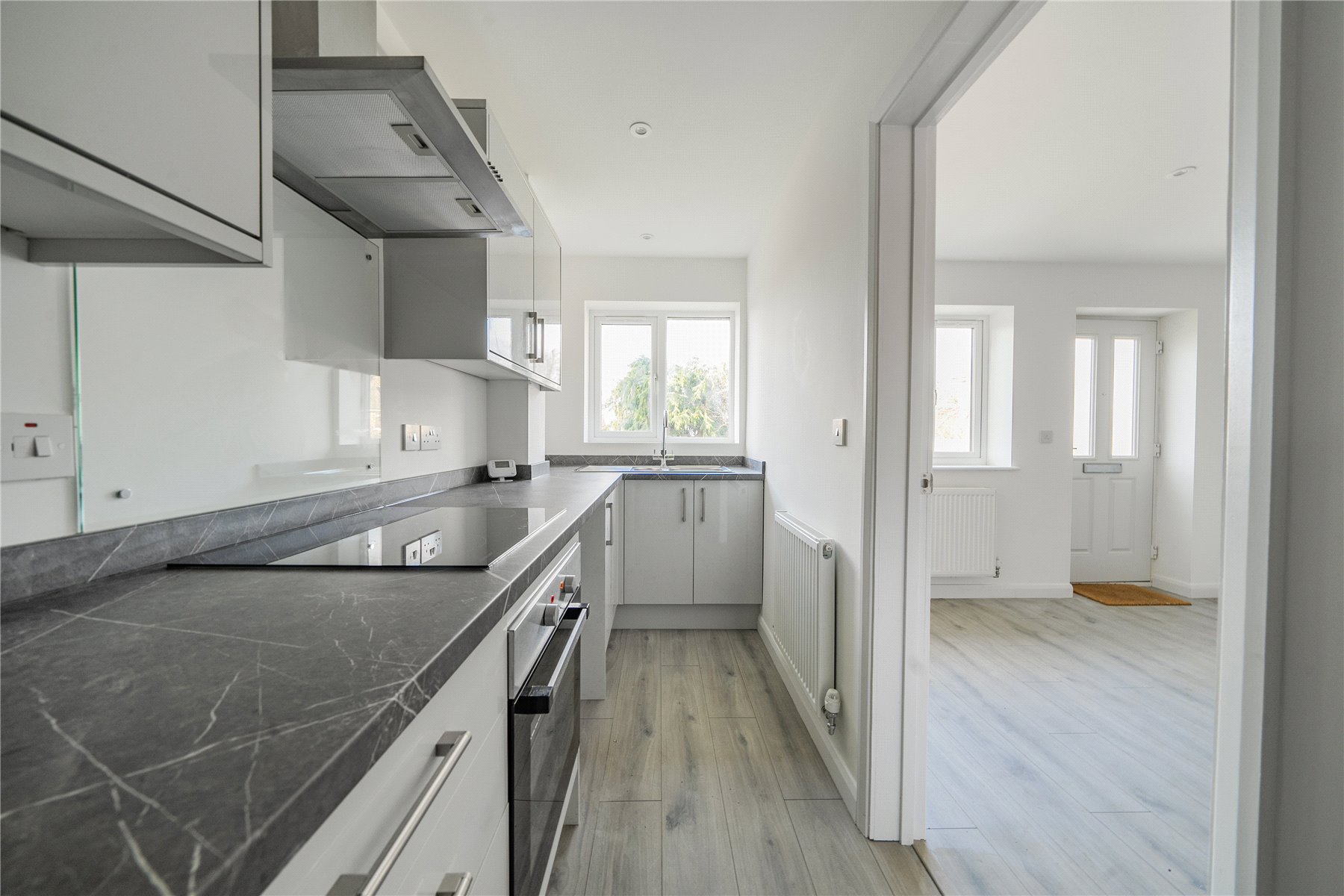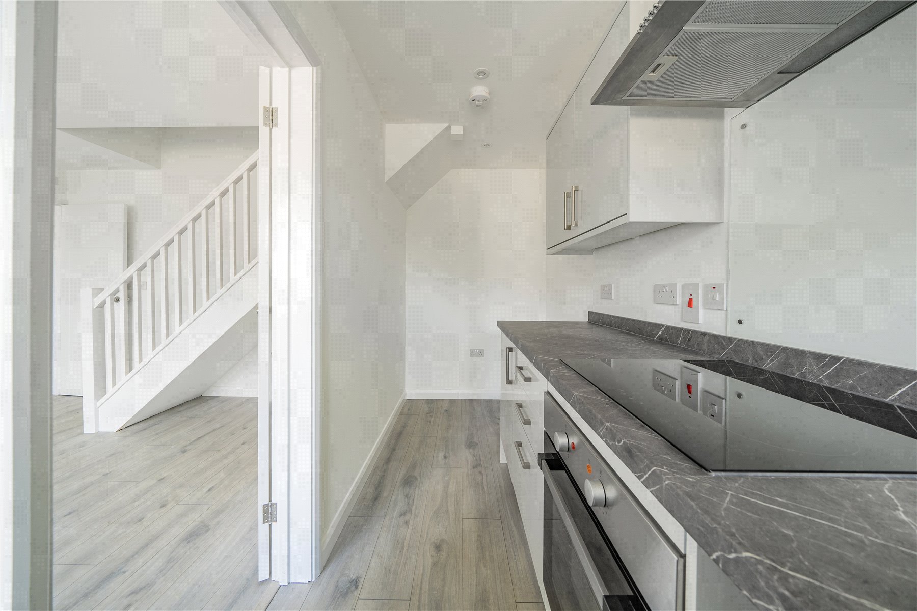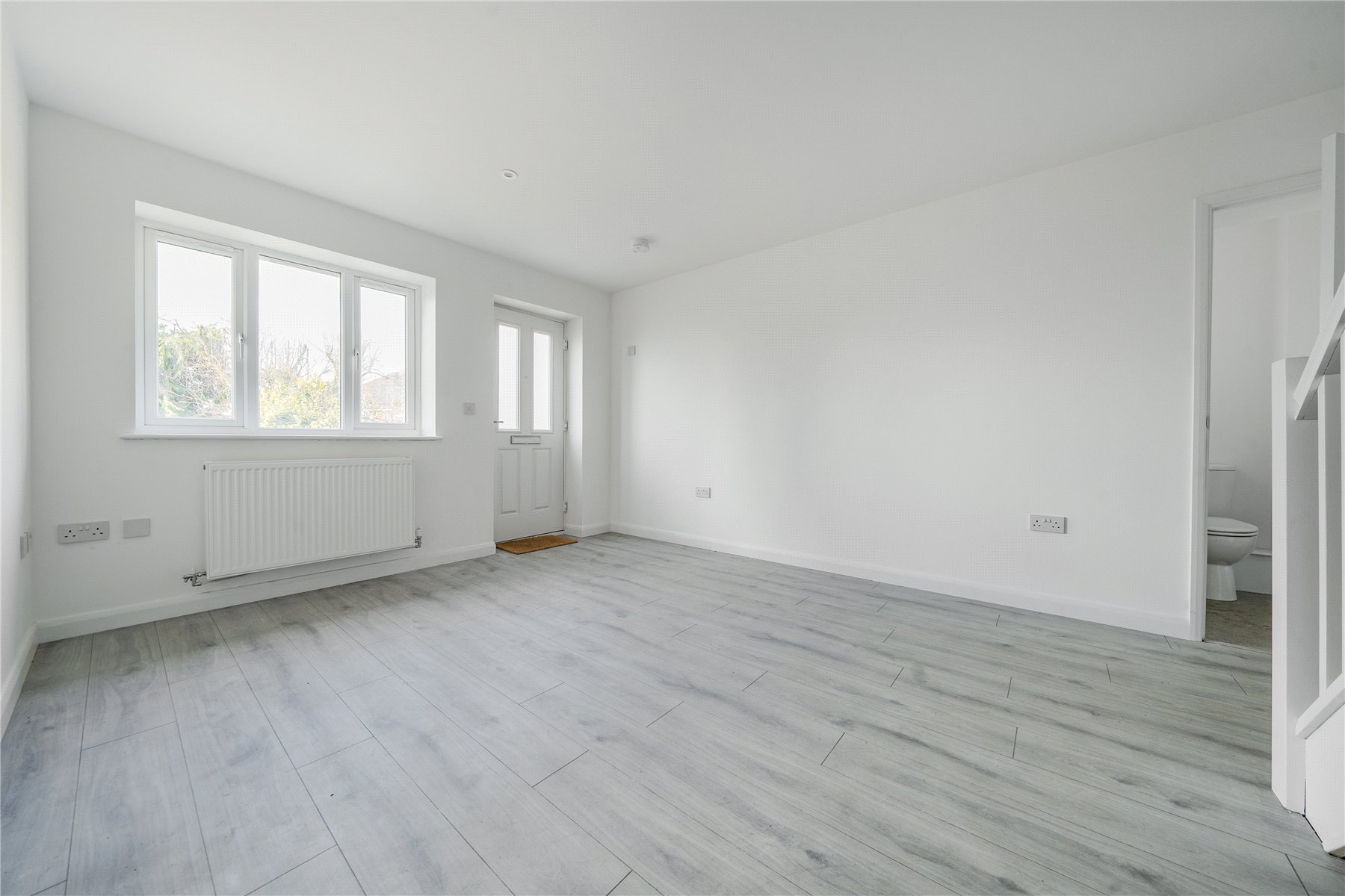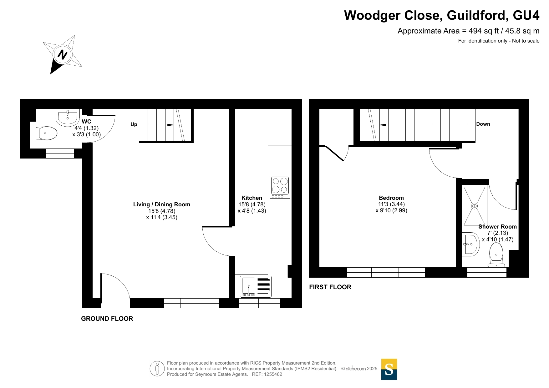This charming one-bedroom house in Woodger Close, Guildford, offers a stylish and contemporary living space. The property has been newly refurbished, ensuring a fresh and modern feel throughout. A ramp leads up to the front door, making the entrance easily accessible, and the well-kept front garden adds to the home's welcoming appeal.Inside, the ground floor features a spacious open-plan living and dining area, providing a bright and airy environment perfect for relaxing or entertaining. The sleek and modern kitchen boasts stylish grey cabinets and elegant marble-style countertops, creating a sophisticated cooking space. A convenient WC is also located on this level.Upstairs, the well-proportioned bedroom offers a peaceful retreat, complemented by a contemporary shower room with high-quality fittings. The neutral white walls throughout the property enhance the sense of space and light, allowing for a versatile and timeless interior. This beautifully updated home is ideal for those seeking a modern and low-maintenance living environment in a desirable location.