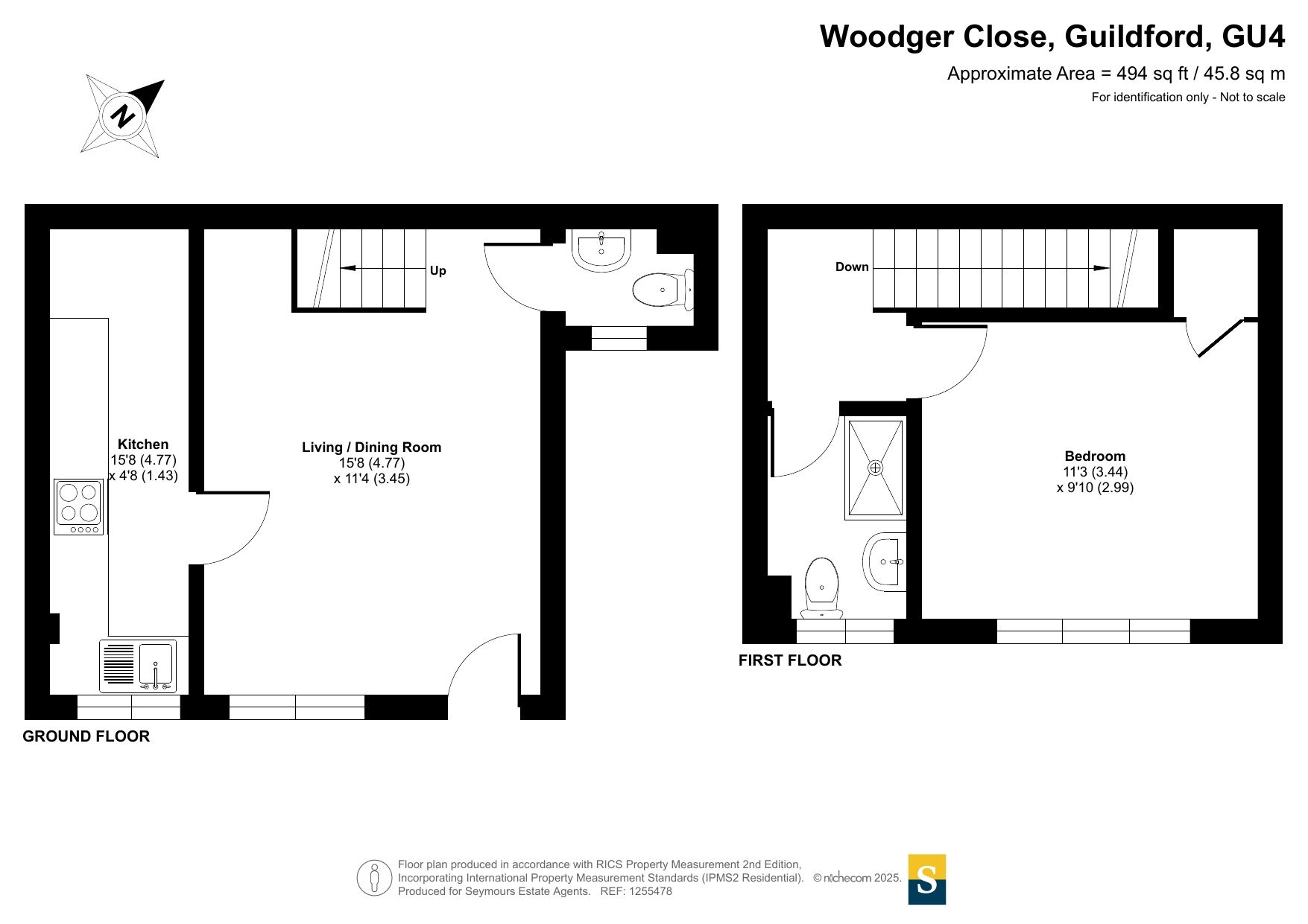 This charming one-bedroom house in Woodger Close, Guildford, offers a stylish and contemporary living space. The property has been newly built, with a fresh and modern feel throughout. A ramp leads up to the front door, making the entrance easily accessible, and the well-kept front garden adds to the home's welcoming appeal.Inside, the ground floor features a spacious open-plan living and dining area, providing a bright and airy environment perfect for relaxing or entertaining. The sleek and modern kitchen boasts stylish grey cabinets and elegant marble-style countertops, creating a sophisticated cooking space. A convenient WC is also located on this level.Upstairs, the well-proportioned bedroom offers a peaceful retreat, complemented by a contemporary shower room with high-quality fittings. The neutral white walls throughout the property enhance the sense of space and light, allowing for a versatile and timeless interior. This beautifully updated home is ideal for those seeking a modern and low-maintenance living environment in a desirable location.