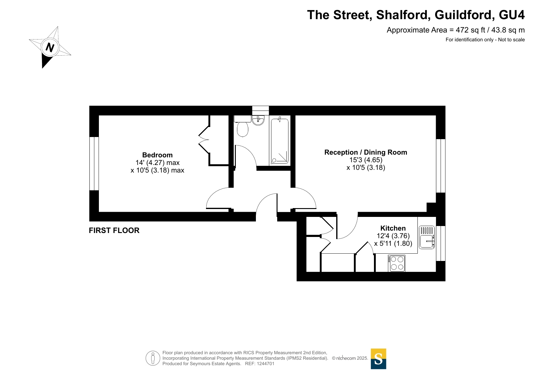 A spacious one bedroom first floor apartment in the sought-after village of Shalford, offering excellent access to Guildford and the surrounding areas. Just a short walk from Shalford train station and local shops, this well-positioned home features a private rear garden, and a parking space.Inside, the property comprises a bright living room, a well-equipped kitchen with space for essential white goods, and a generous double bedroom with a built-in wardrobe. The bathroom is fitted with a shower over the bath, WC, and hand basin.