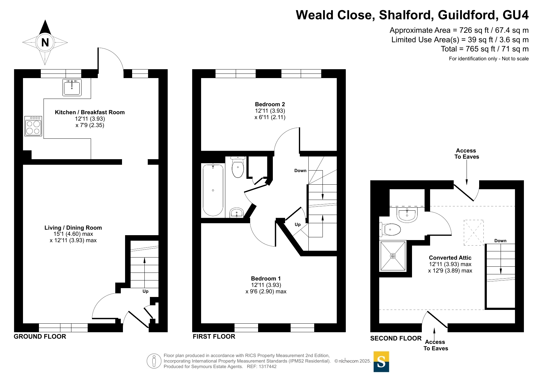 This well-presented mid-terraced house is located in a quiet cul-de-sac within the desirable village of Shalford, just south of Guildford. The property offers well-planned accommodation arranged over three floors and benefits from both front and rear gardens, making it ideal for families, first-time buyers, or those looking for convenient access to Guildford. Additionally, the property includes a garage located in a nearby block.On the ground floor, the home features a spacious open-plan living and dining room that leads through to a bright kitchen and breakfast area, with direct access to the rear garden. The layout is ideal for modern living and entertaining.The first floor includes two bedrooms, both of which offer comfortable living space. The second bedroom overlooks the rear garden, while the main bedroom is positioned at the front of the house. A centrally located bathroom serves this floor.The second floor boasts a converted attic room which adds valuable extra space. This area is currently set up as an additional bedroom or flexible use room, complete with its own en-suite shower room and access to eaves storage.Situated within approximately 150 yards of Shalford's branch line station, the property allows quick access to Guildford in just one stop. Guildford's mainline station provides regular services to London Waterloo in around 35 minutes. The location also offers excellent access to the village's range of shops, cafes, and road links, while the bustling town centre of Guildford is only one and a half miles away and offers a wide selection of high street retailers, restaurants, and bars.Early viewing is highly recommended to fully appreciate this charming and conveniently located home.