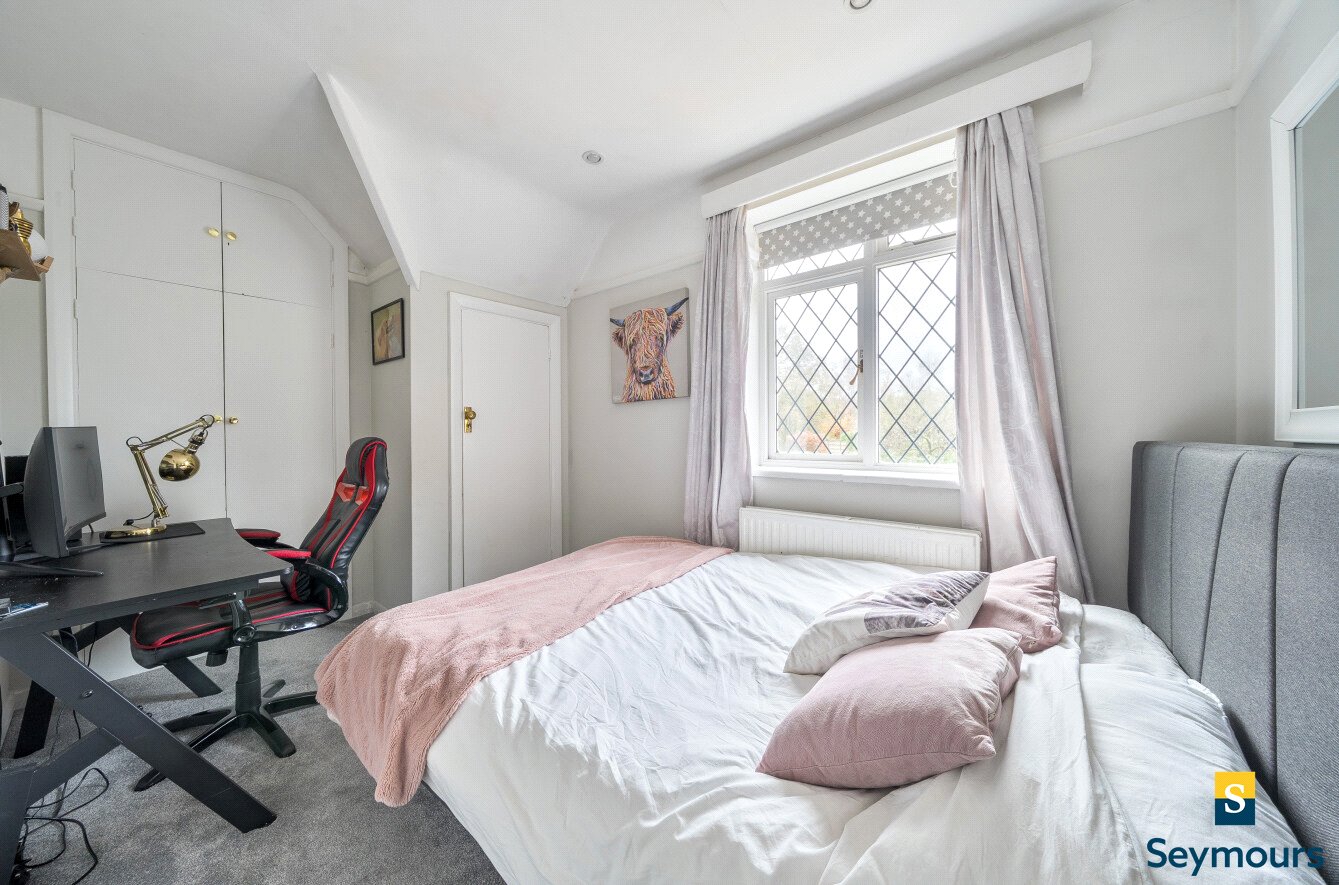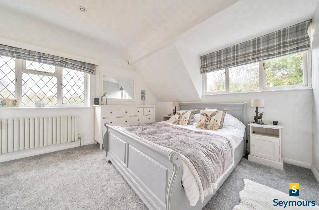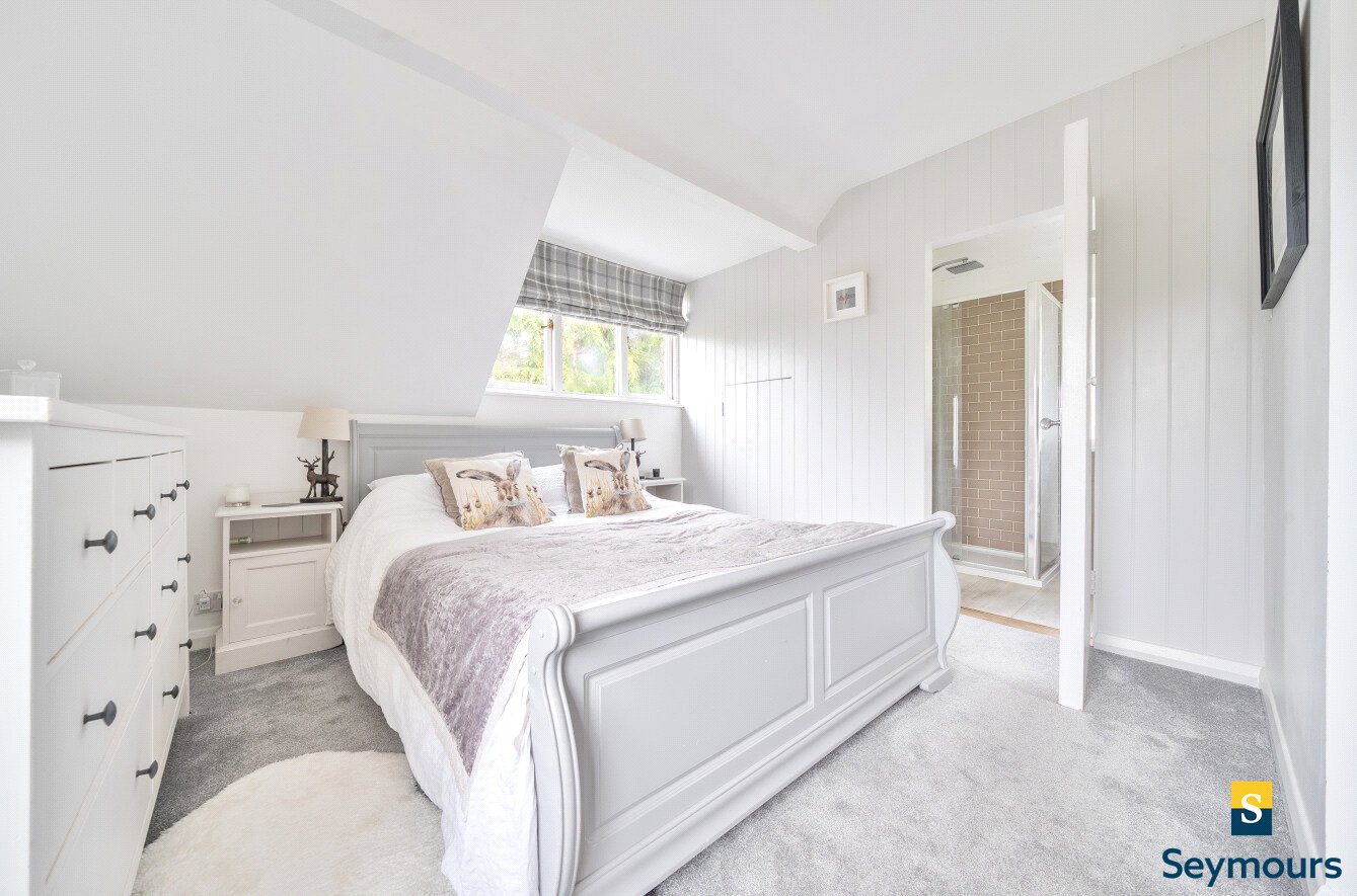 Upstairs, the property provides four double bedrooms, each thoughtfully presented and enjoying outlooks over the surrounding greenery. The principal bedroom offers the comfort of its own en-suite, finished to a modern standard. The remaining bedrooms are served by a beautifully appointed family bathroom, which features contemporary fittings and a calm, neutral palette, creating a restful and practical space for day-to-day use.