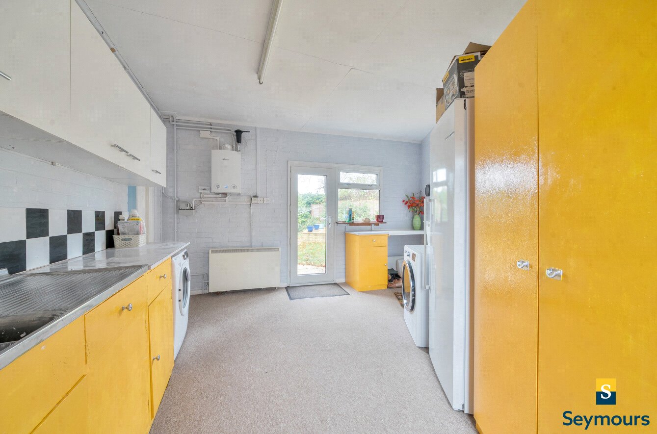 The utility room provides additional storage and workspace, along with plumbing for laundry appliances. It has both a back door to the rear garden and a front door to the front garden. From here there is also an internal door to the attached garage and workshop, which offers excellent space for storage or hobbies and could be adapted for other uses if desired.