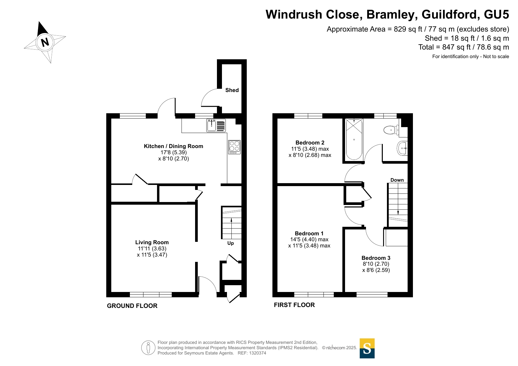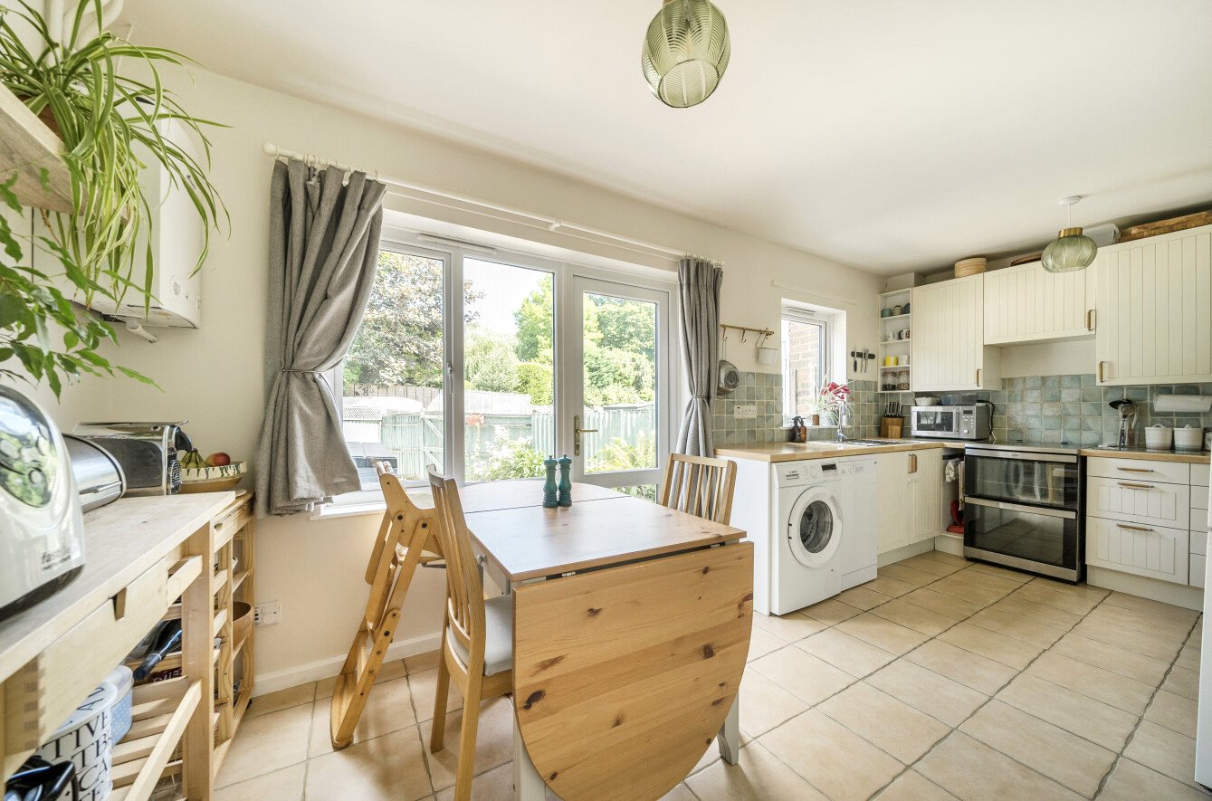 A well-presented three bedroom terrace house situated in the heart of the village, a short walk from the local shops. On the ground floor is an entrance hall, lounge, and a 17'8 kitchen/breakfast room with a patio door to the garden. Upstairs are three well-proportioned bedrooms, a stylish family bathroom with a modern suite and patterned tiled flooring. Outside is a rear garden and a brick store, plus communal parking. Windrush Close is situated in the heart of Bramley. The village includes a library, two churches, two pubs, two restaurants, two small supermarkets, two cafes, a fine butcher and greengrocer, a travel agent, and two barbers. Bramley Infant School is close by, and the very popular St Catherine's School for Girls is also within walking distance. Guildford is 3.5 miles to the north, and here the historic High Street provides excellent shops, restaurants, and bars. The main line station has a fast commuter service to Waterloo in 38 minutes, and all of Guildford's sought-after schools are within reach. Bramley is surrounded by some lovely walking countryside, including the picturesque Thorncombe Valley.