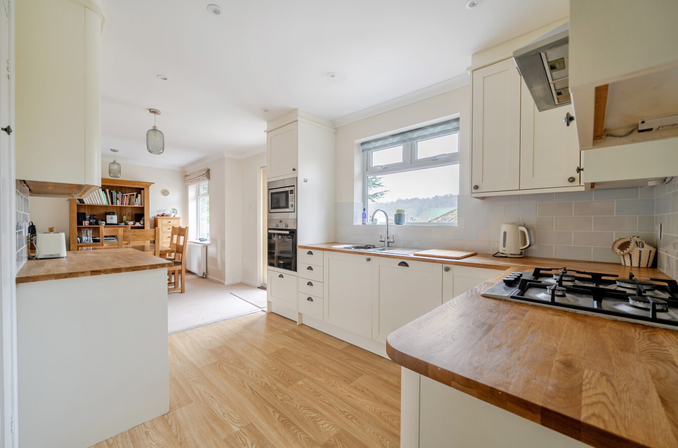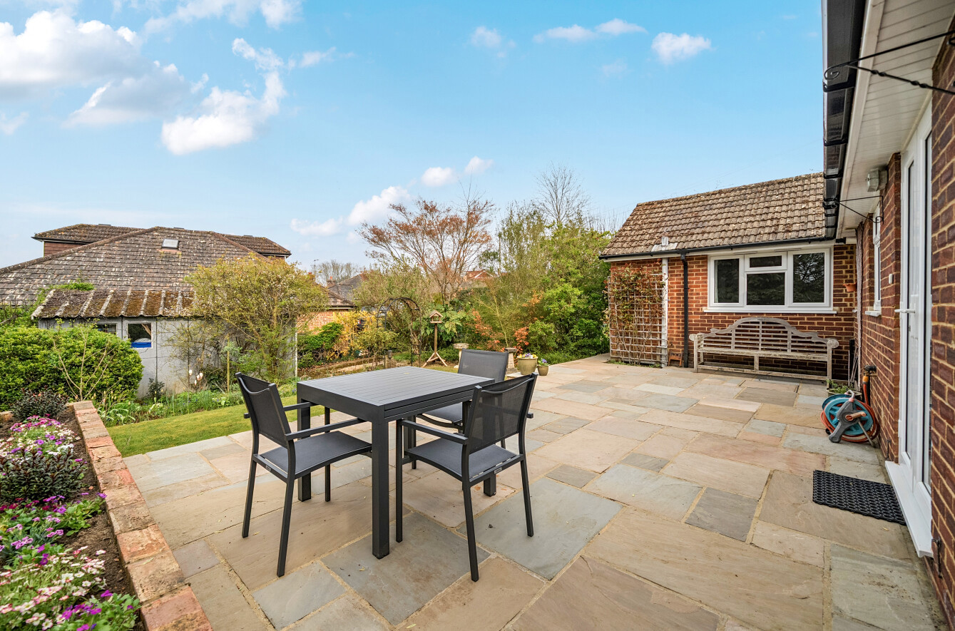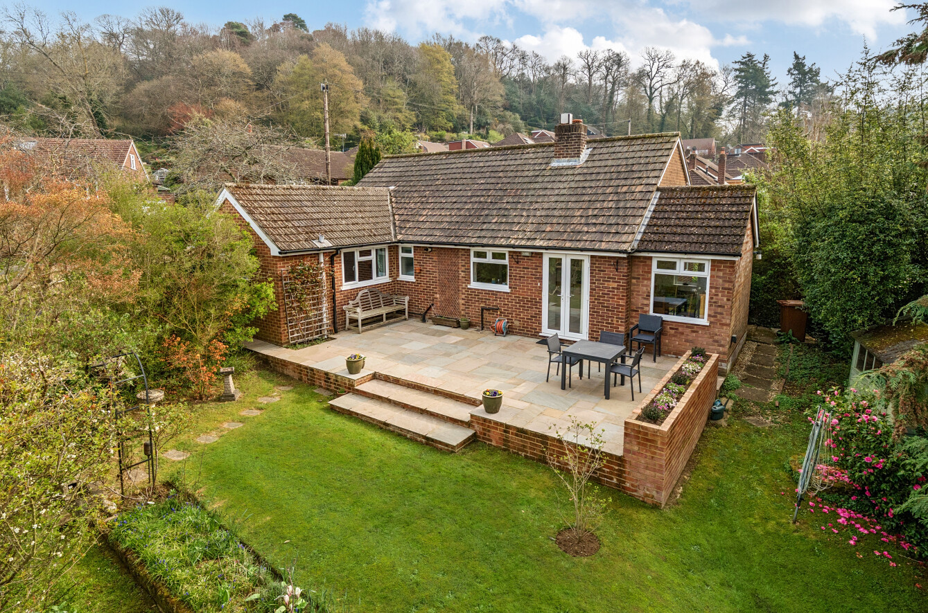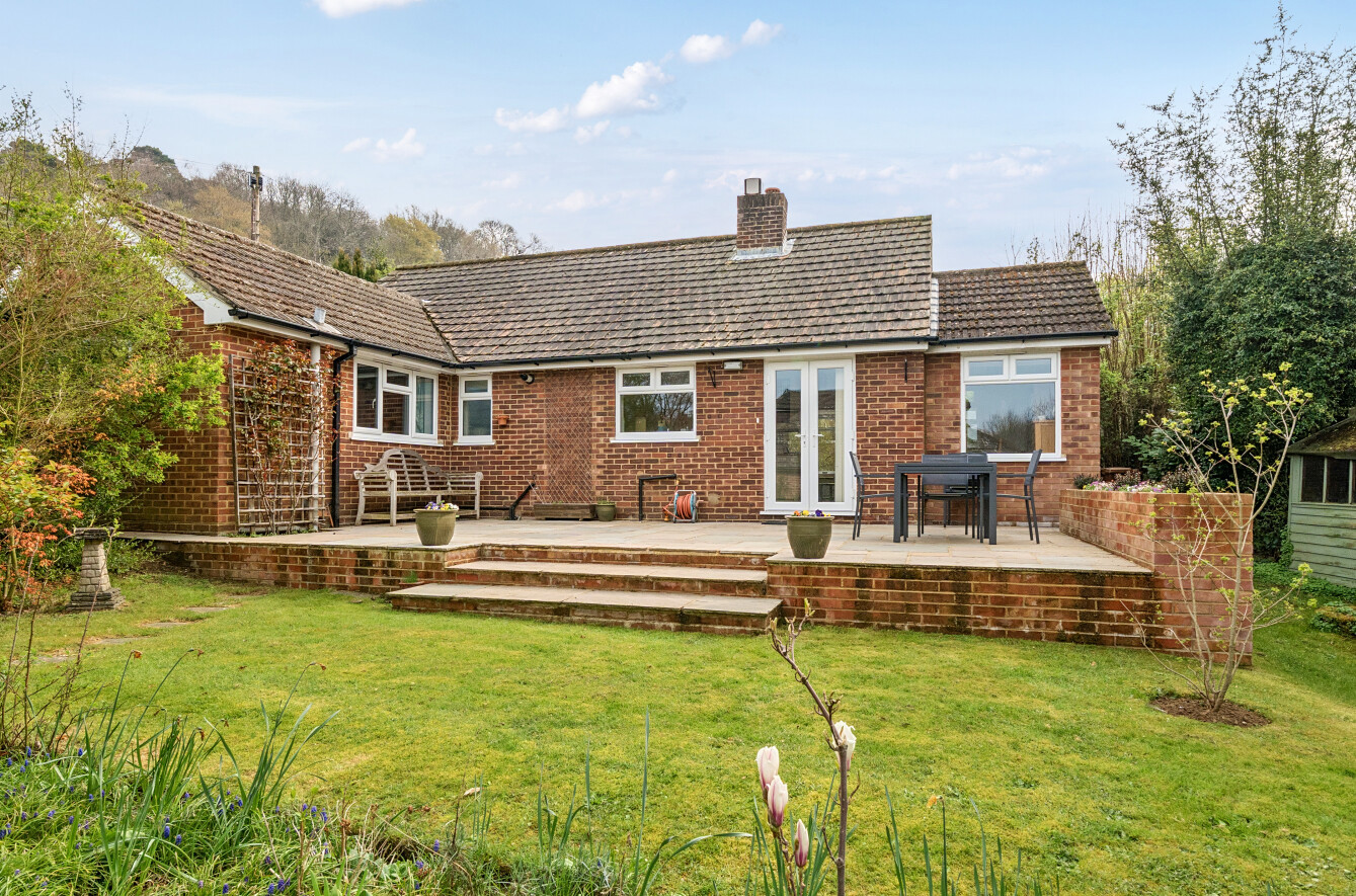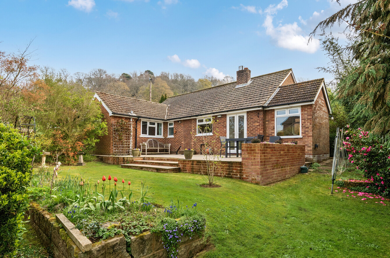 Set on a desirable corner plot in a quiet position close to the heart of Wonersh village, this attractive detached bungalow has been thoughtfully extended to provide generous and well-balanced accommodation ideally suited to both everyday living and entertaining.The property is approached via a welcoming porch leading into a spacious entrance hall, setting the tone for the light and airy interiors throughout. The sitting room is a particularly inviting space, enhanced by a bay window that draws in natural light and creates a pleasant outlook. To the rear, the open plan kitchen/dining room forms the true hub of the home, offering a wonderful social space with direct access to the garden and attractive views beyond. The kitchen itself has been recently refurbished and is fitted to a high standard, combining practicality with contemporary style.There are three well-proportioned bedrooms, including a principal bedroom with its own ensuite shower room, while a modern family bathroom serves the remaining rooms. The layout also offers flexibility, making it well suited for those seeking space for home working or adaptable living arrangements.Outside, the gardens are a particular feature, wrapping around the property and providing a delightful setting with areas for relaxation and outdoor dining. The plot also benefits from off-street parking and a detached single garage.Properties of this nature in such a sought-after village location are rarely available, and early viewing is highly recommended