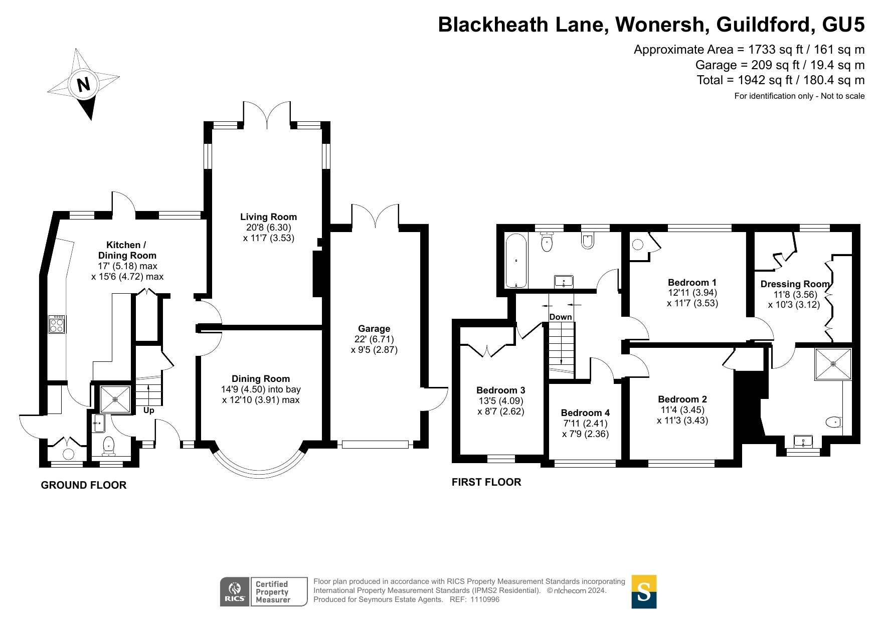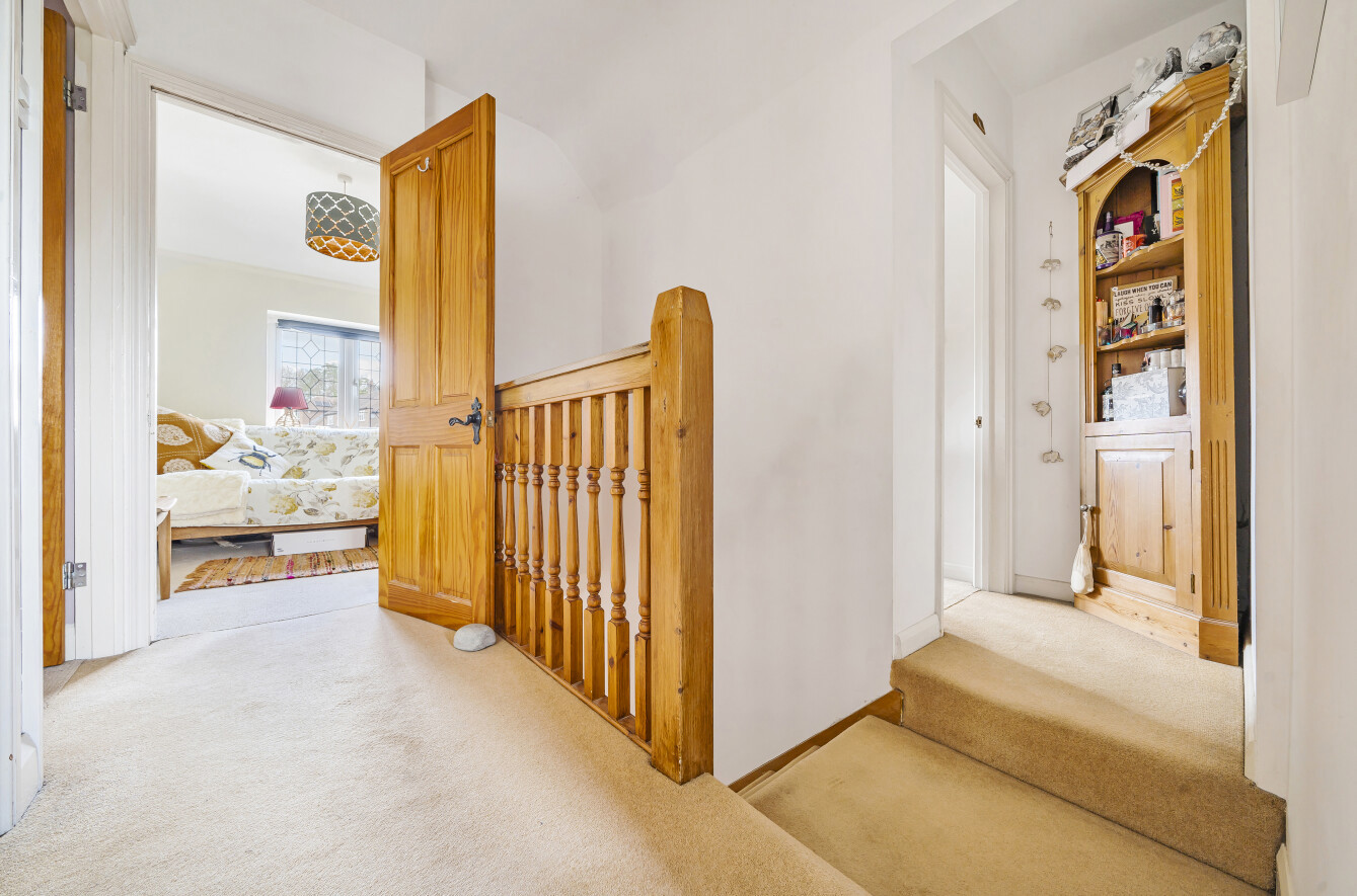 Ascending to the first floor, discover the sumptuous principal suite featuring a separate dressing room and ensuite shower room, offering a serene retreat. Two additional double bedrooms with fitted storage, a fourth single bedroom and generous family bathroom complete the upstairs layout.
