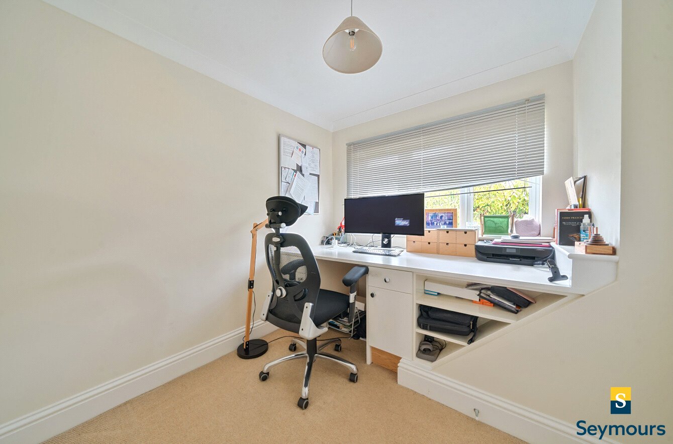 Upstairs, the principal bedroom benefits from its own en-suite shower room, while the remaining rooms are served by a modern family bathroom. The design ensures plenty of natural light throughout, with each bedroom enjoying views either over the garden or towards the surrounding neighbourhood.