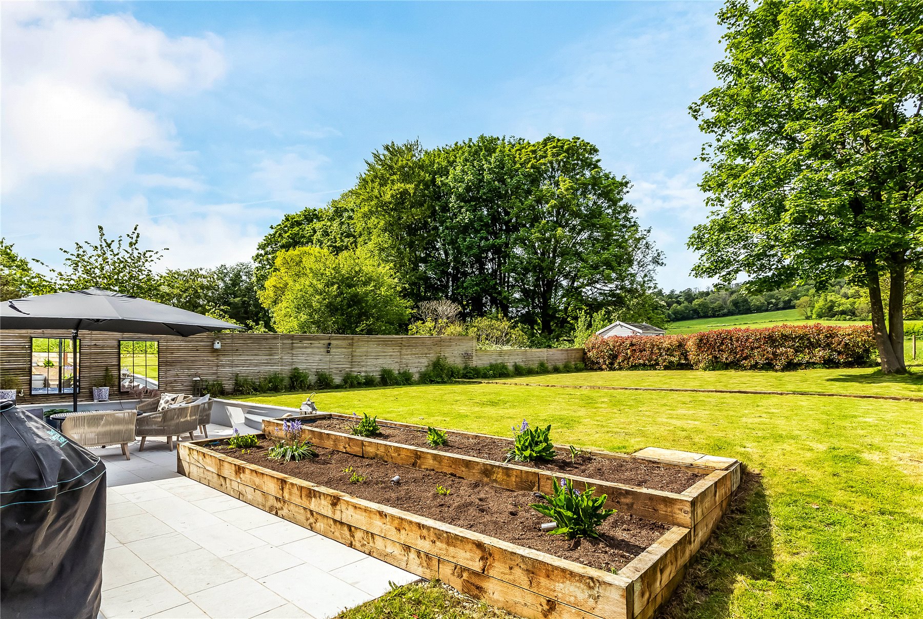 There are spectacular views from the gardern, overlooking fields (which are owned by the National Trust, so fully protected) offering plenty of privacy to the property. The garden features sandstone patio areas to both the rear and front gardens, both offering ideal spaces for outdoor furniture, perfect for alfresco dining. The rear garden is mainly laid to lawn with some pretty landscaping of raised beds and a private area with sunken hot tub, discreetly tucked away for extra privacy. There is a further storage shed to the rear of the garden. The front garden also offers a high degree of seclusion, with patio area and expanse of lawn. In addition there is a home gym, and additional storage. Behind secure electronic gates there is also ample off street parking.