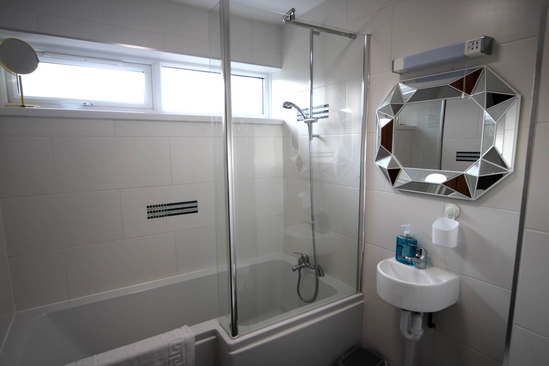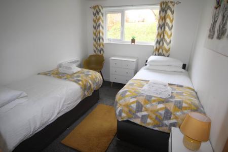 The entrance leads into the modern open plan lounge which is bright and airy with a door giving access out to the side aspect generous patio/seating area, also there is an open plan kitchen/dining area. The modern fitted kitchen has a generous amount of white high gloss units with ample workspace. The cooker and hob are built in with extractor canopy over and the additional appliances are free standing. From the open hallway doors lead off to the bedrooms, bathroom and shower room with the benefit of a concealed area where the washing machine is situated. The 3 bedrooms are all spacious doubles with a selection of quality bedroom furniture too all. The bathroom and shower room have been finished to a high standard with all modern fittings and fully tiled. There are modern wall mounted heaters for efficiency and heated towel radiators to the bath and shower room.