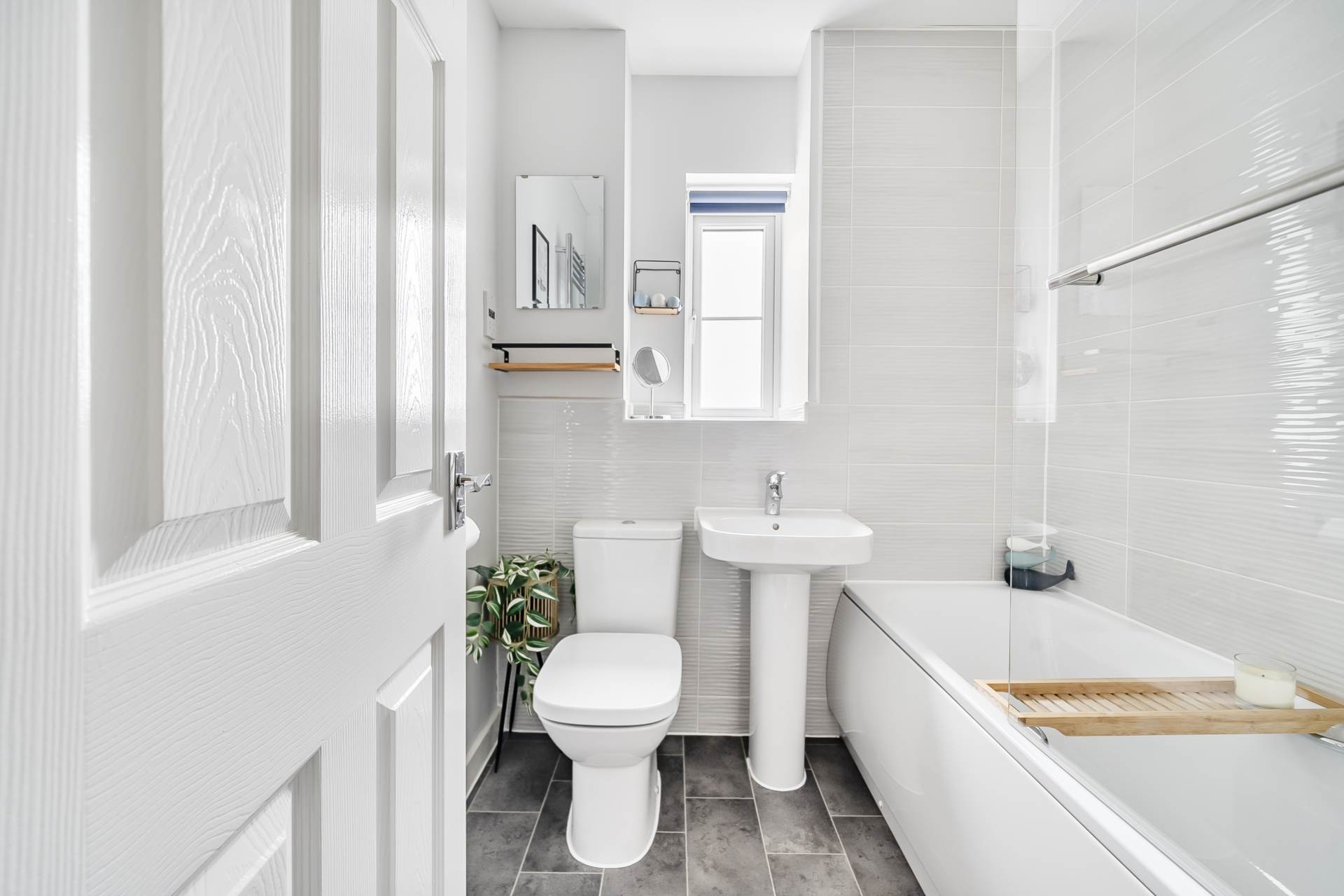 Bedroom 2 which is another double, overlooks the rear garden as does Bedroom 3. The Family Bathroom comprises of low level WC, wash hand basin. bath with a mixer tap shower over, heated towel rail and extractor. The property has the benefit of gas central heating, uPVC double glazing and is still covered under the NHBC guarantee.