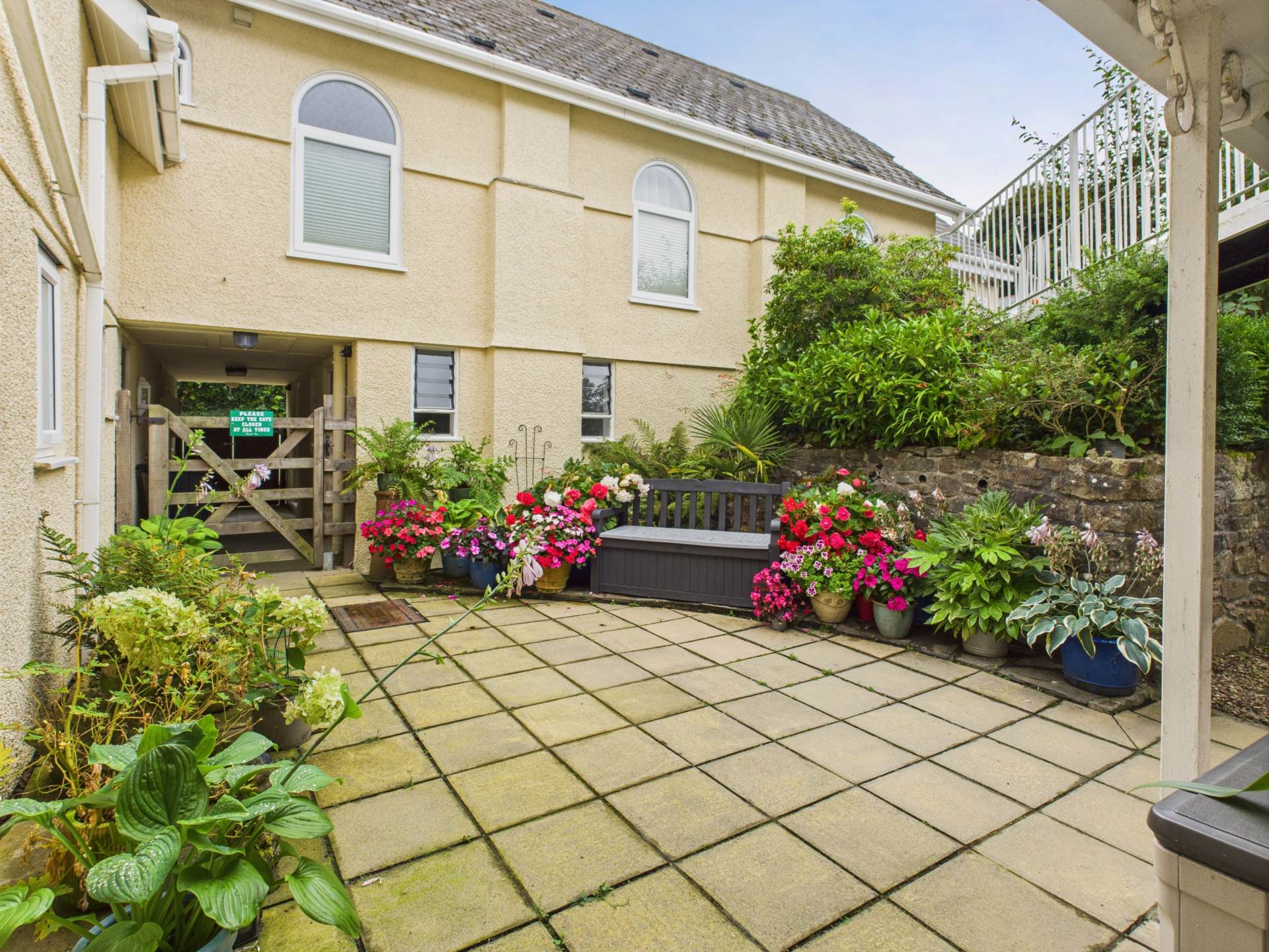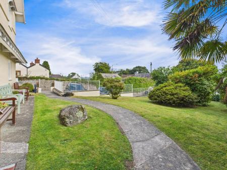 Accessed from the kitchen or externally there is a private Courtyard Patio garden ideal for potted plants and outside dining. A gate then provides access to the Laundry room which is available to the residents and includes a tumble dryer, shelving and ample storage space. There is an additional building where the utility meters are housed. To the left hand side of the main building lies a small communal garden for residents use, with a lawn and natural hedging. A pathway leads around to the front where there is a lawned garden including flowers, trees and shrubs and has a seating area. Views can also be enjoyed from here. Outside drying area to the rear.