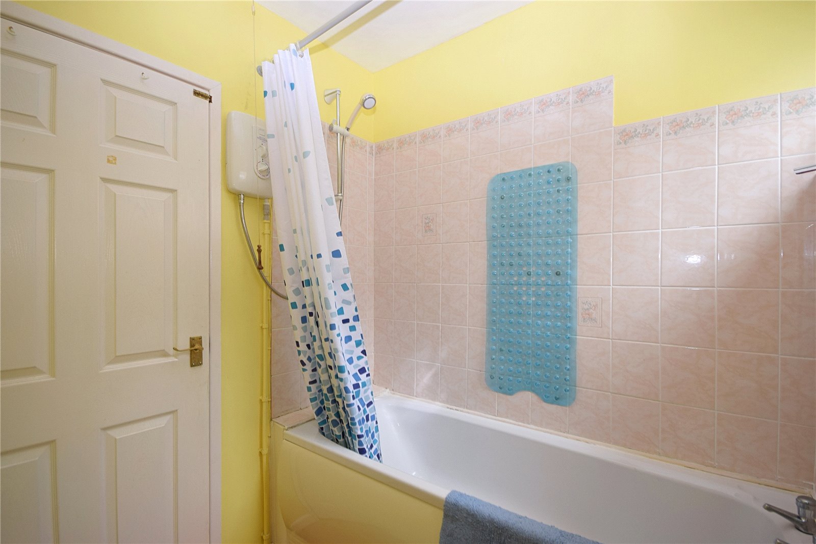 - Modern bathroom with shower-over-bath and smart tiled surround