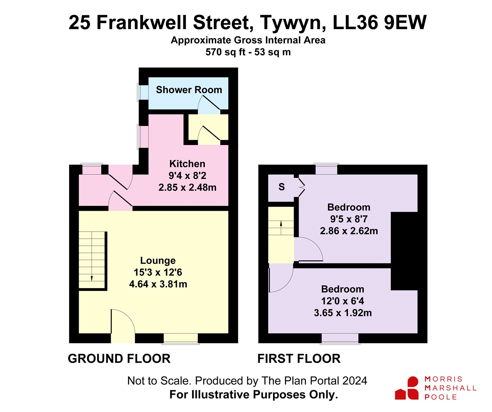The first floor offers two bedrooms, located to the front and rear of the home. Bedroom one benefits from over stairs storage.