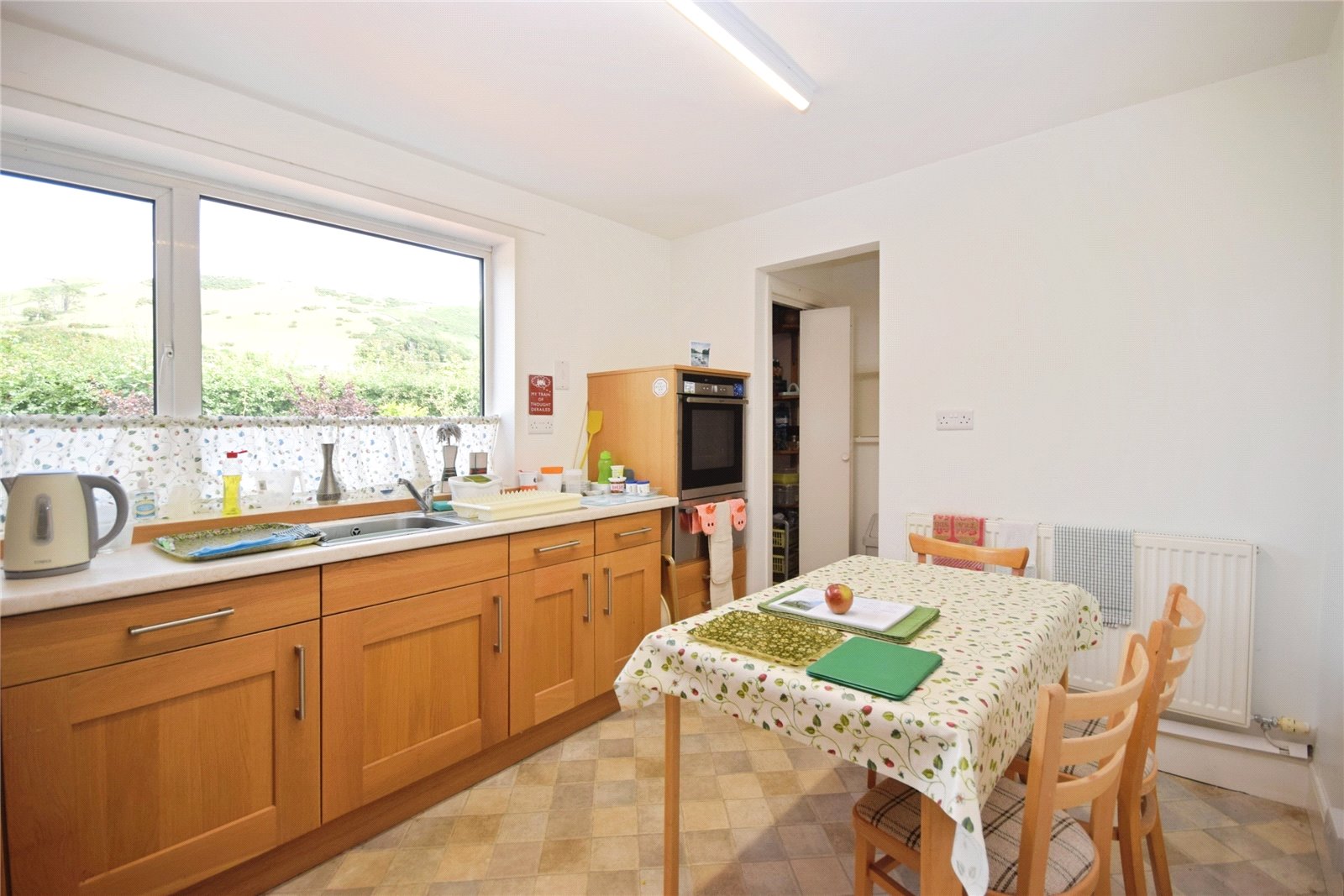 The property comprises of entrance porch, leading into the entrance hallway, with staircase to the first floor and understairs storage. A spacious cloakroom adjoins the porch, with WC and wash basin. The hallway leads to the living room, a substantial room, complete with glazing to two aspects. The living room flows into the sun room, with glazing to two aspects which opens through to an additional sitting room, taking advantage of the views towards the rear garden. A separate dining room is located to the front of the home, with serving hatch to the kitchen. The kitchen, also located to the front of the home, benefits from a selection of fitted base and wall units, laminate worktops and integrated electric oven with ceramic hob. The kitchen features a walk-in pantry storage cupboard, with shelving. The ground floor is complete with a handy utility room, housing the gas fired boiler and plumbing for a washing machine and tumble drier. The utility is complete with base and wall units as well as rear entrance door.