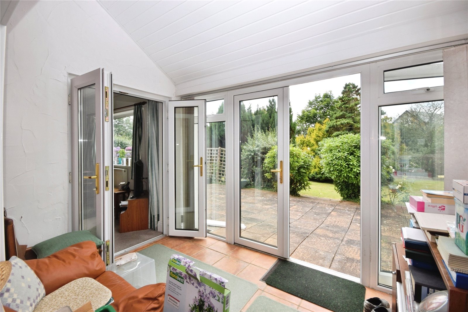 Outside the property benefits from a driveway, with parking for multiple vehicles, leading to the attached single garage. The garden extends to the front, side and rear of the home, bordered by established hedges adding additional privacy. The garden is in excellent condition, primarily laid to lawn, with a selection of mature trees, shrubs and flower beds. A large garden shed is located towards the rear boundary, along with a former vegetable patch. A large patio adjoins the home and sun room, benefitting from a south westerly facing position.