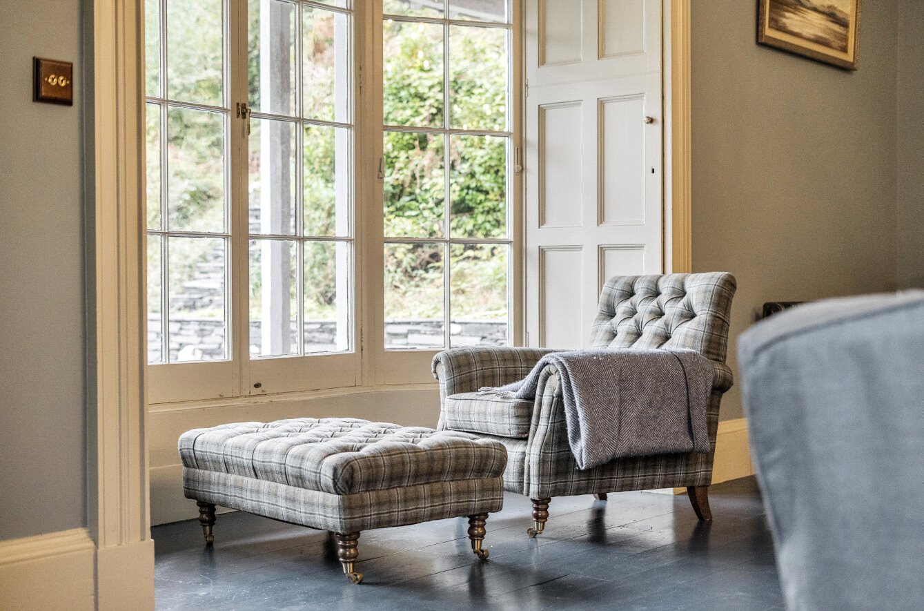 Peniarth Uchaf offers a substantial kitchen and breakfast room with fitted quartz worktops, a double Belfast sink, centre island, and dual-aspect windows opening to the rear garden. The formal dining room features a part-marble open fireplace, while the living room is complete with exposed floorboards, a marble fireplace, and a multi-fuel burning stove. A separate reading room provides a peaceful retreat, with an open fireplace and period flooring. The entrance hallway, with mosaic-style flooring and a grand staircase, creates a striking first impression. Additional ground floor rooms include a cloakroom, plant room, utility room, office, and hallway.